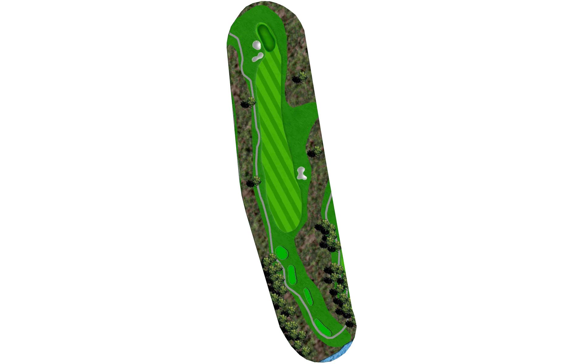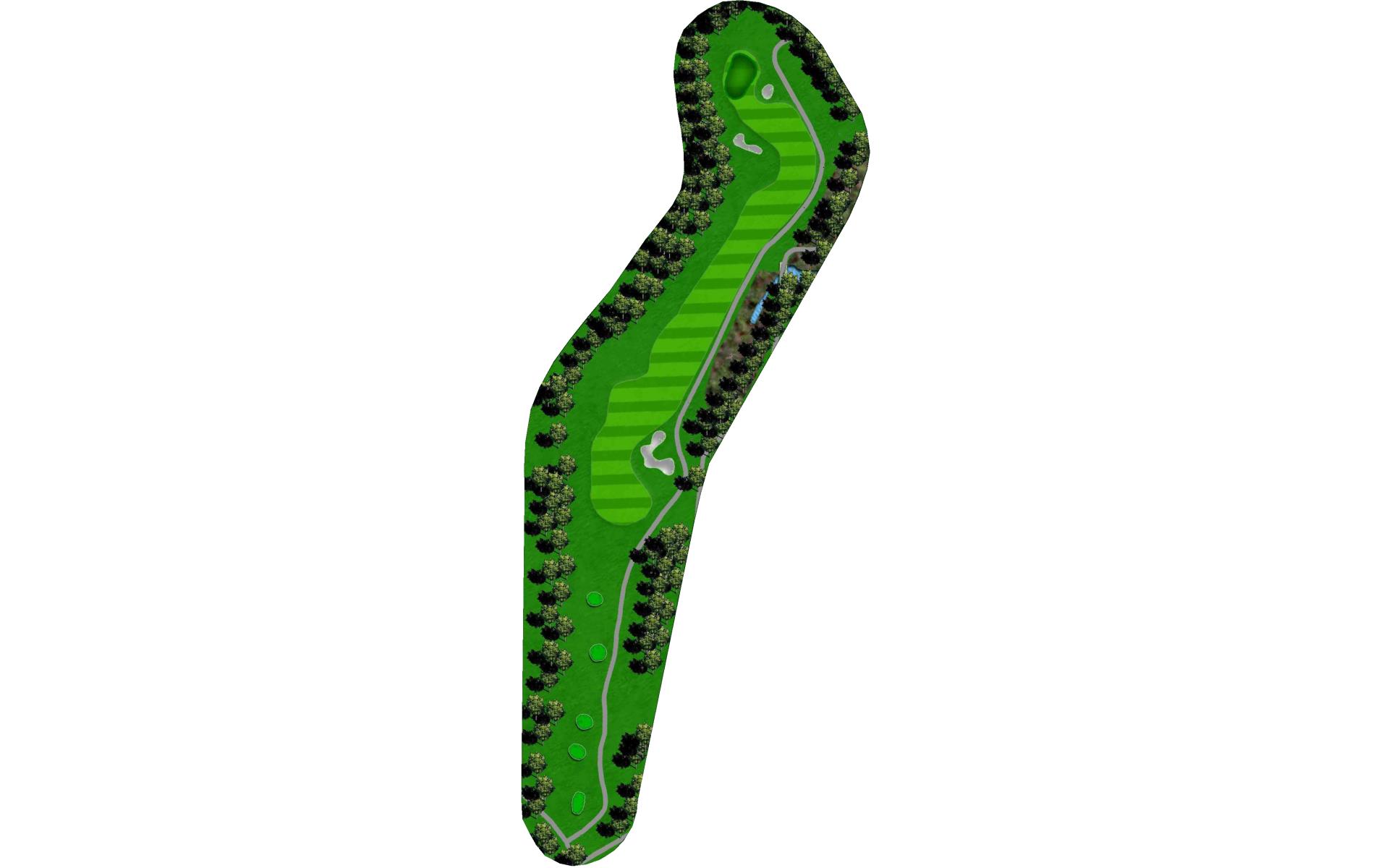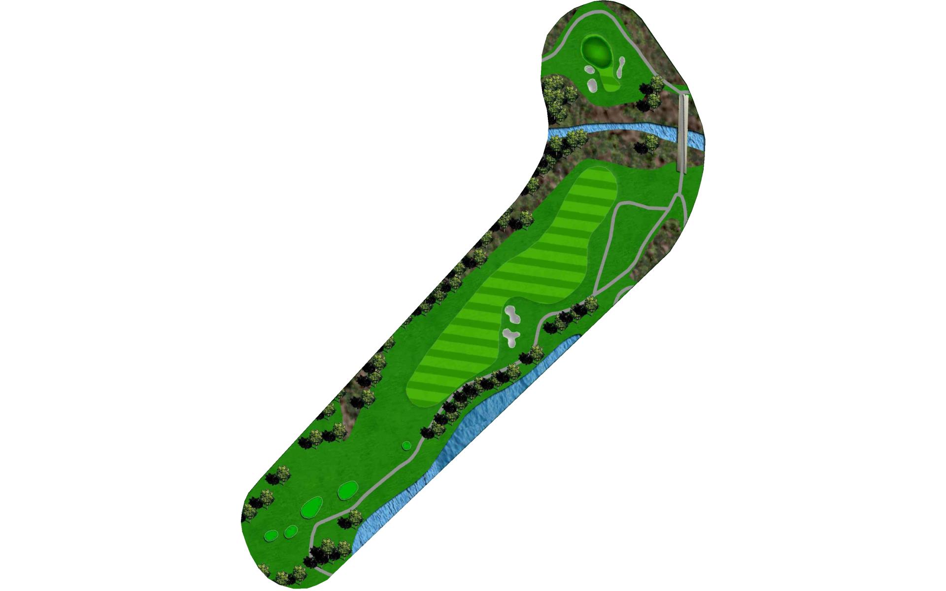 | An accurate tee shot down the left side, avoiding the two fairway bunkers, is required on this par 5. On the second shot, players can either lay-up short of the creek about 100 yards from the green or try to attack the elevated green with a fairway wood. A penalty area left and three greenside bunkers will easily punish anything offline. |