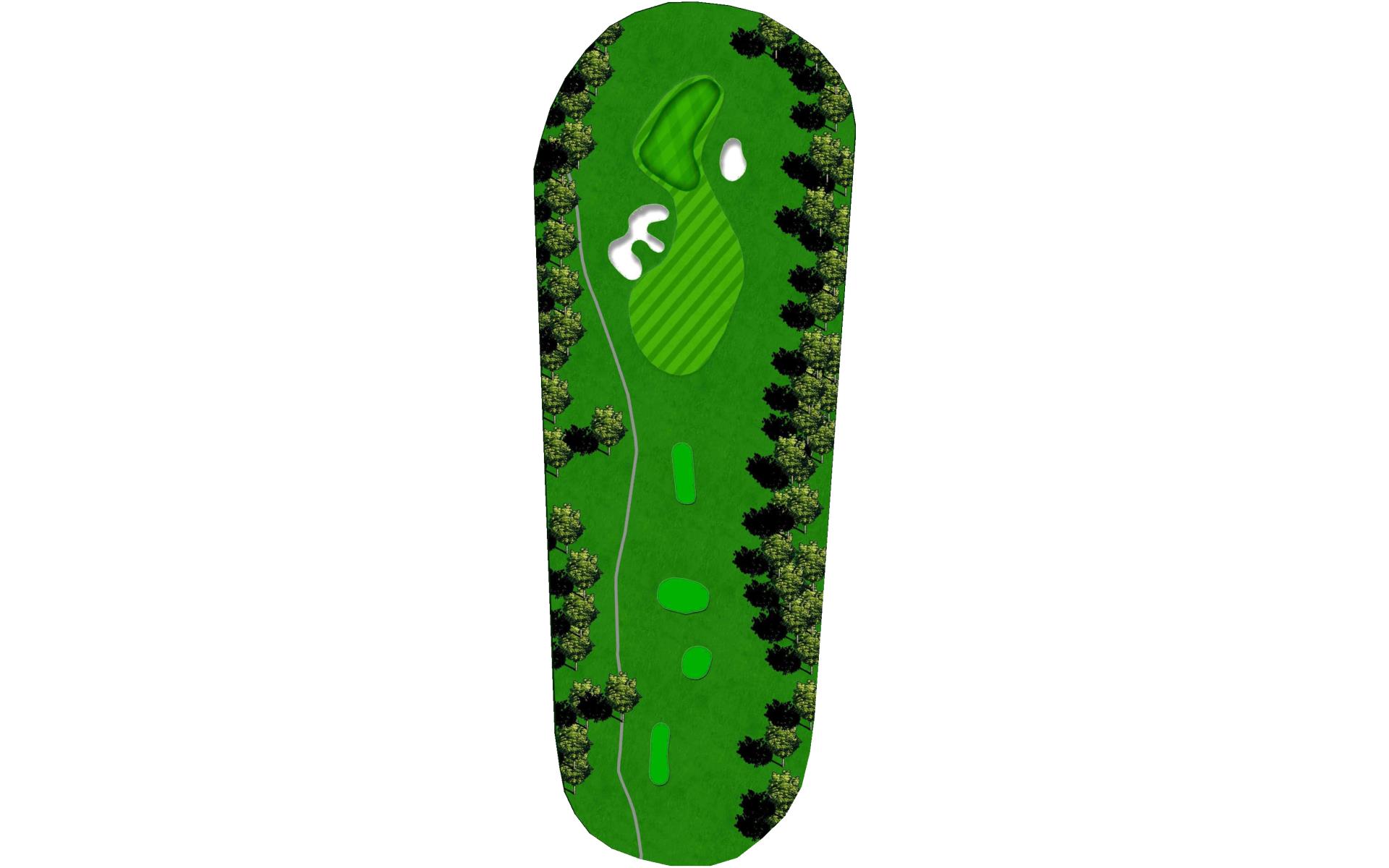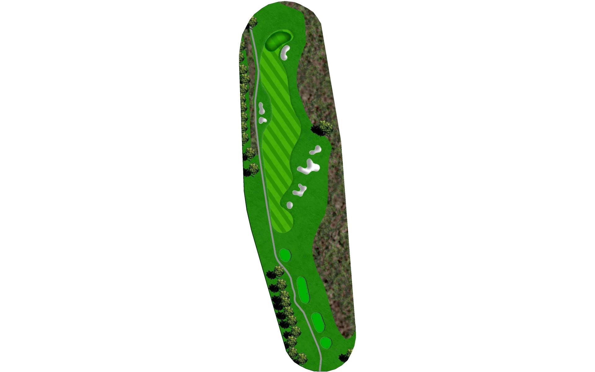 | The ideal tee shot on the par 4 fifth is to the right of the fairway bunkers that guard the left side. Approach shots from the top of the hill will have to be accurate as this green is the smallest on the course. |