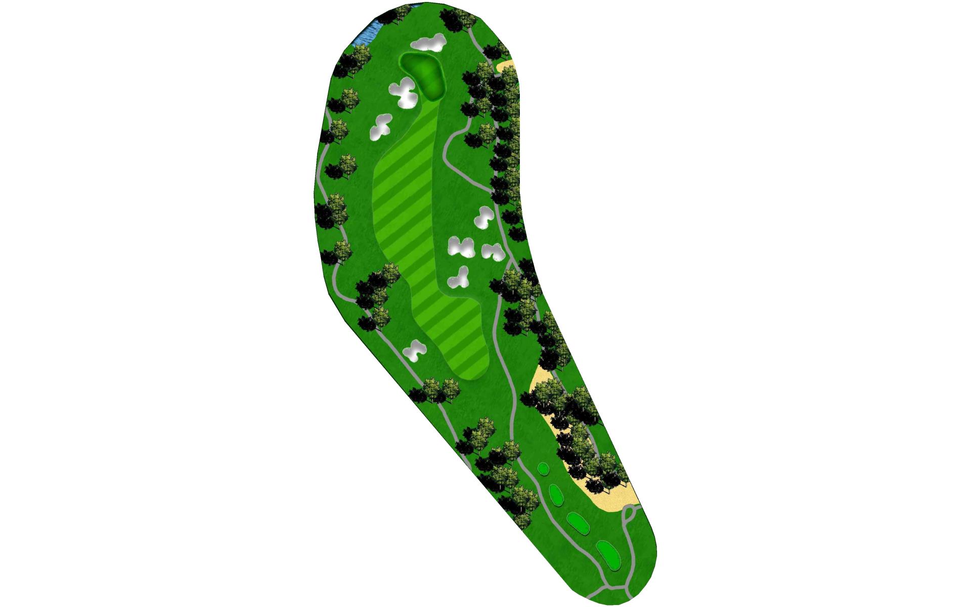 Although this par 4 bends slightly right overall, the tee shot favors a right to left shape to avoid the trees hanging over the left side of…