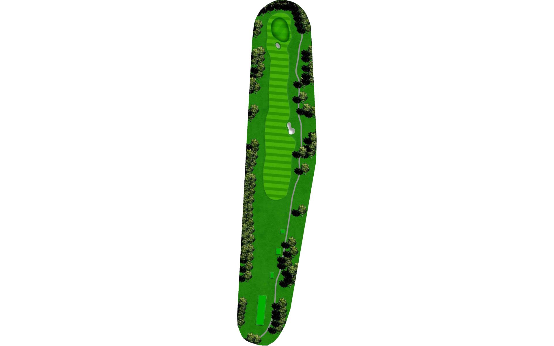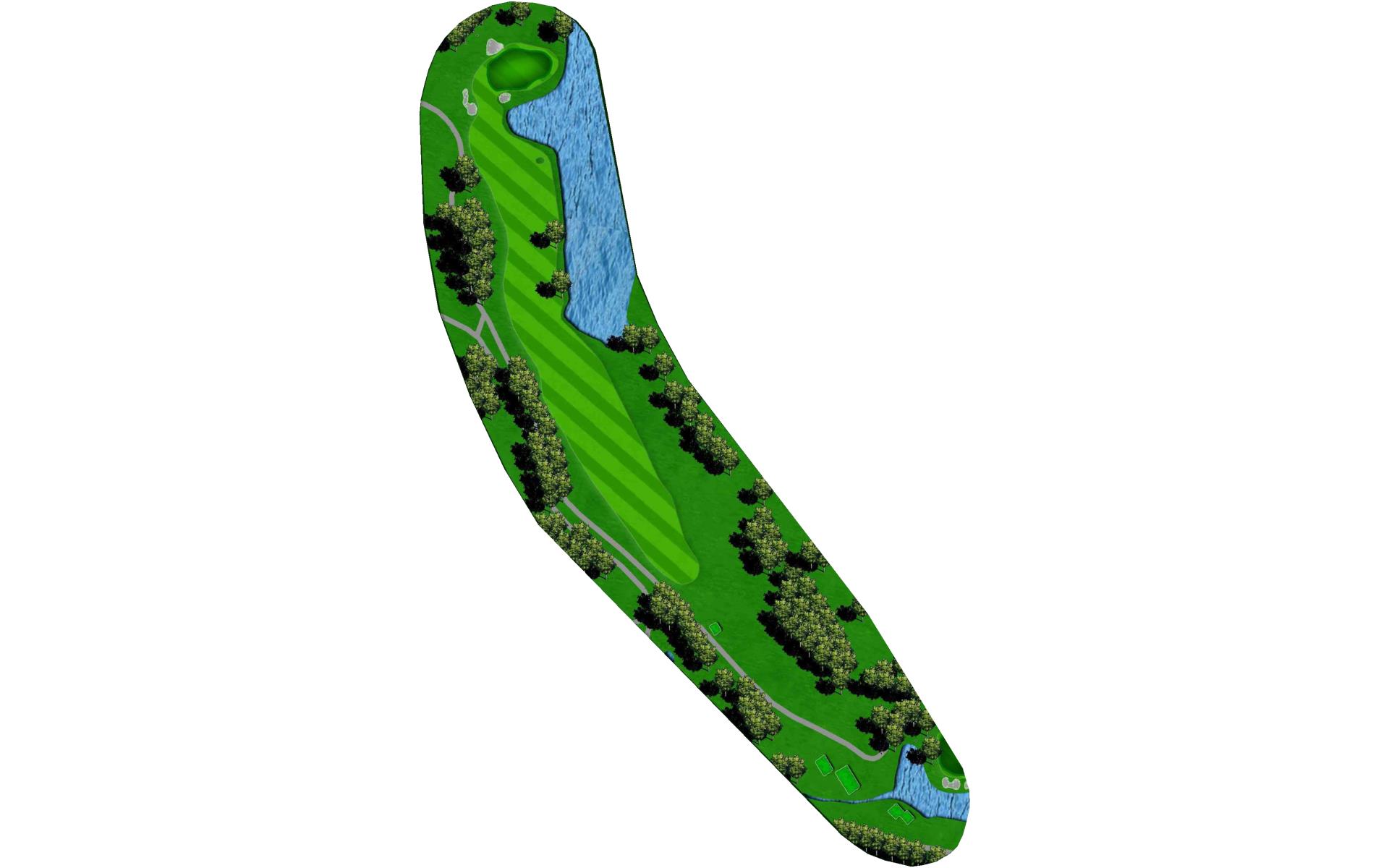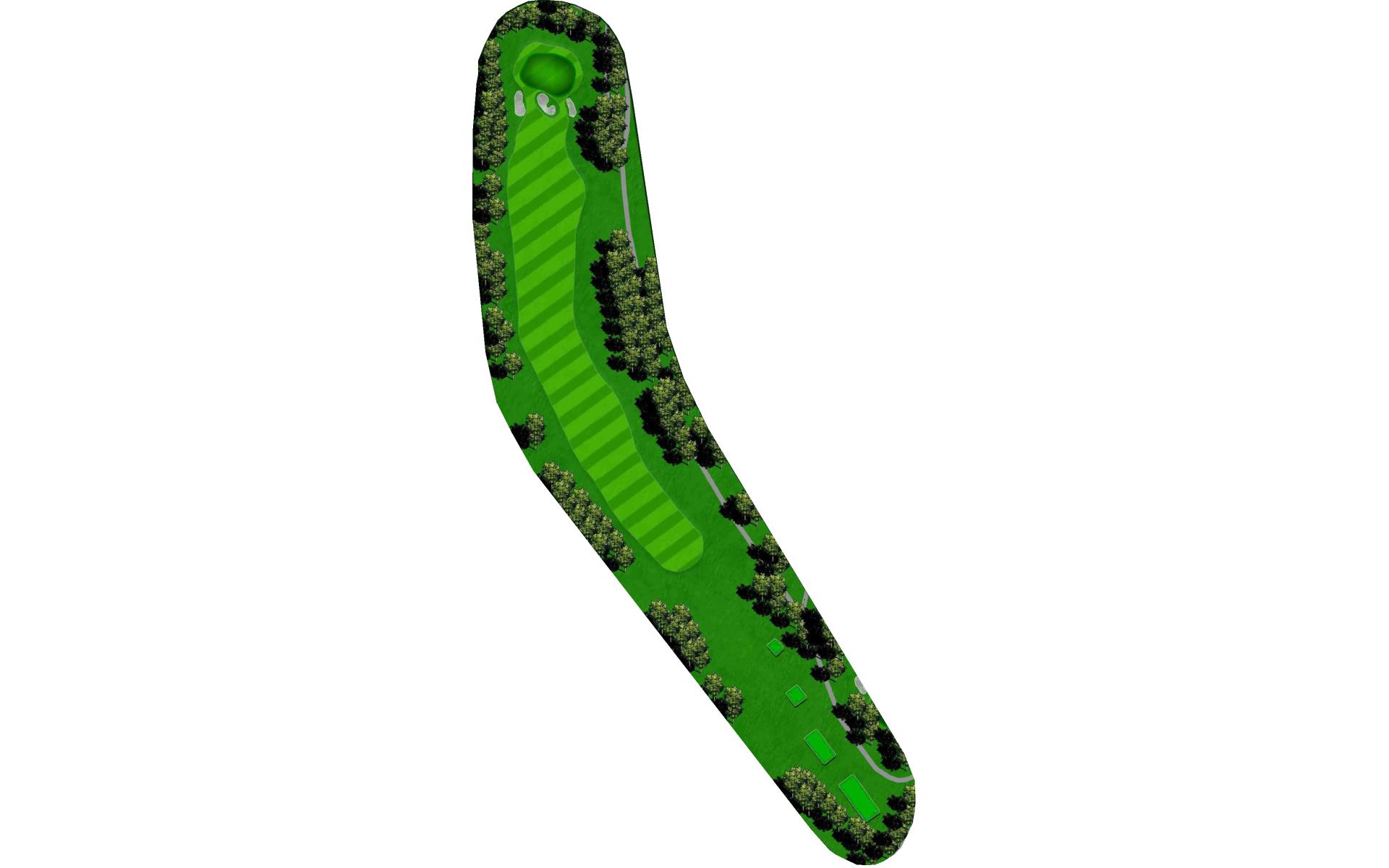 One of the most difficult par 4s on the course; your tee shot is critical to making par. A slight draw with a driver or well placed layup will avoid the dangers of the tree lined fairway.