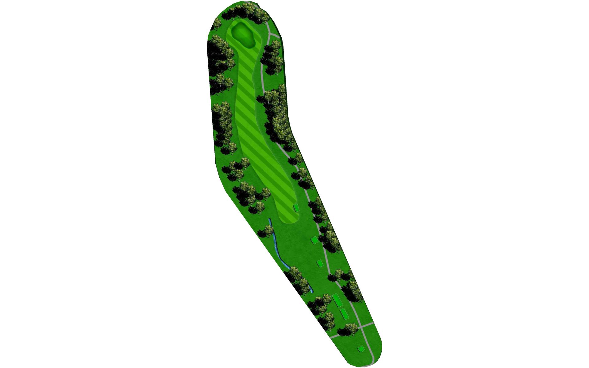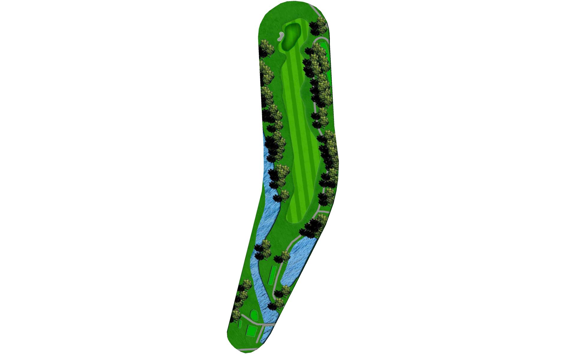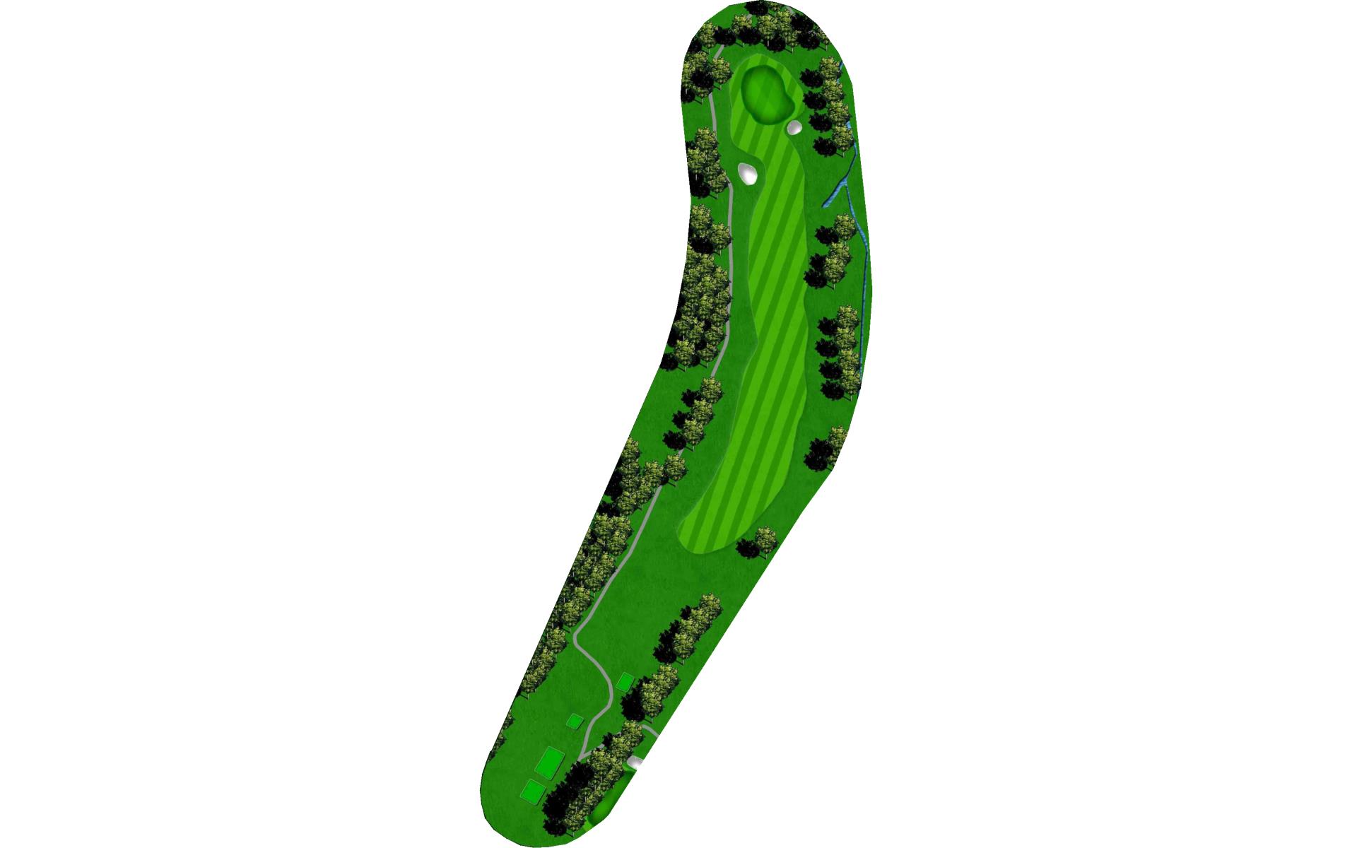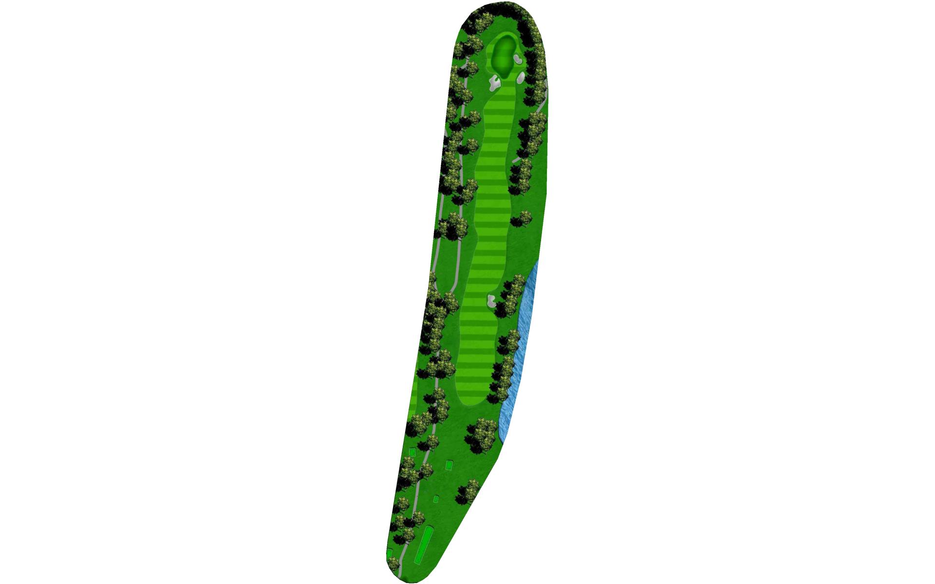 One of the most difficult par 4s on the course; your tee shot is critical to making par. A slight draw with a driver or well placed layup will avoid the dangers of the tree lined fairway.