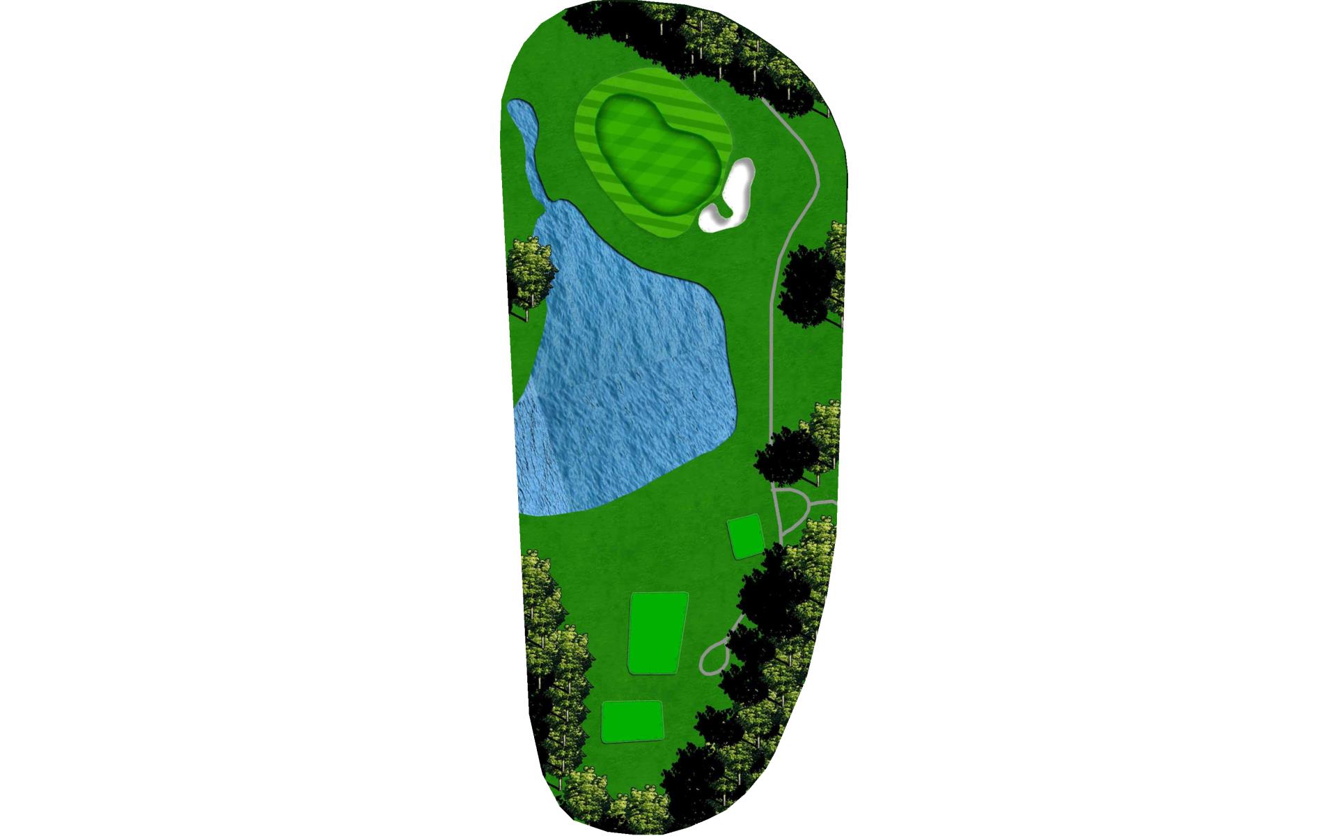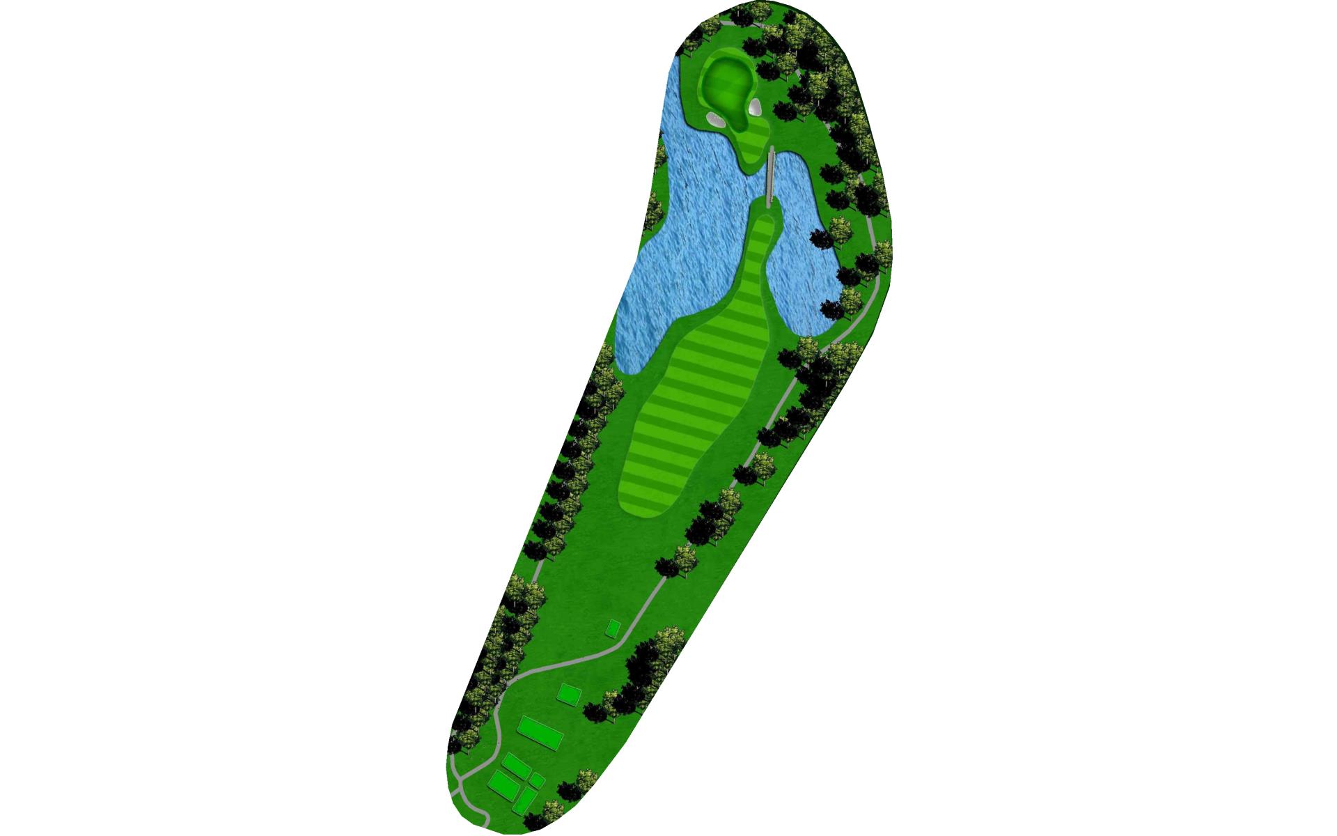 A signature par 5 and a great way to finish the round. Make sure to play to the left side of the fairway for a right kick. Long hitters can challenge the green that looks to drip into the lake on the right side. A great third would be 120 yards out to a narrow green with multiple pin locations that can challenge even the best wedge player in the game.