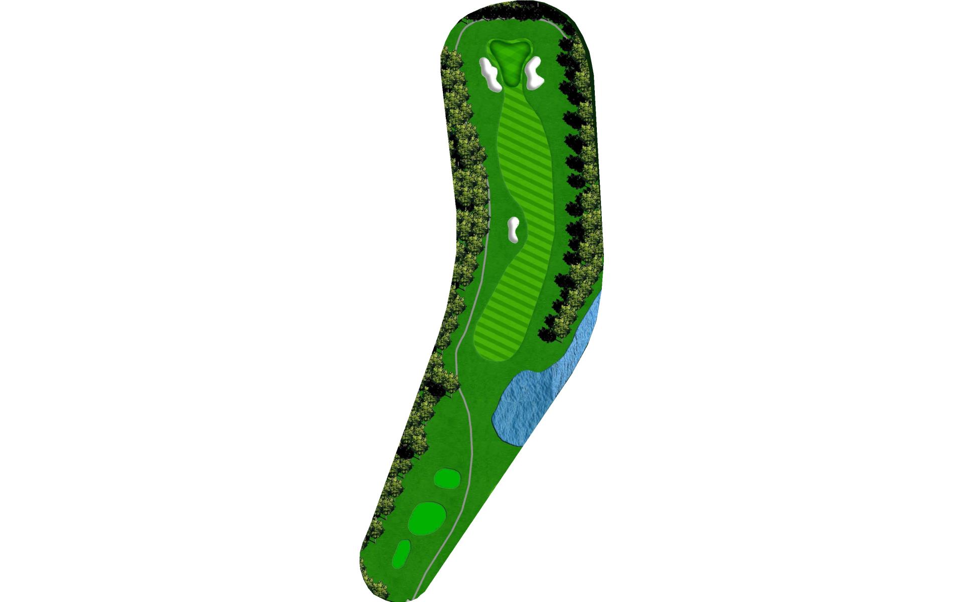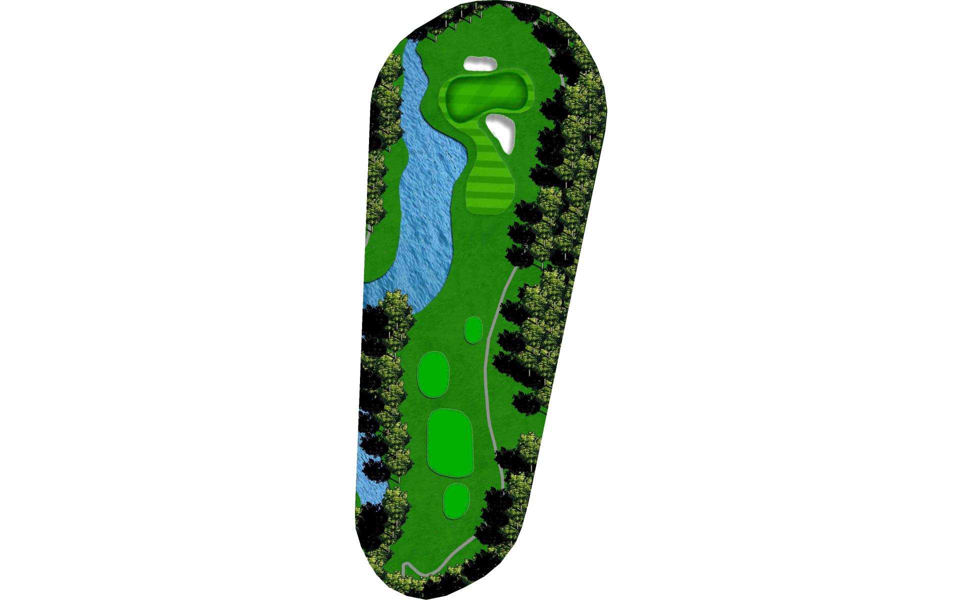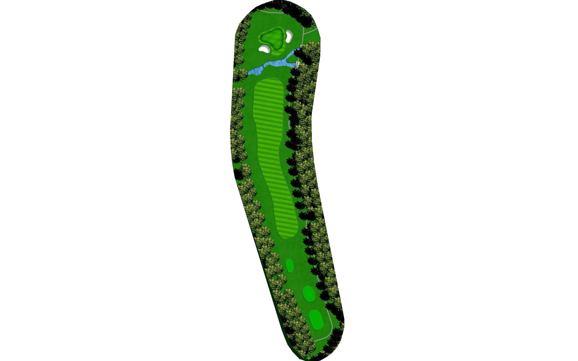 | Your tee shot is your most important here. A long drive over Swift Creek sets up a short iron approach and chance for birdie. A laid-up drive creates a more difficult approach. |