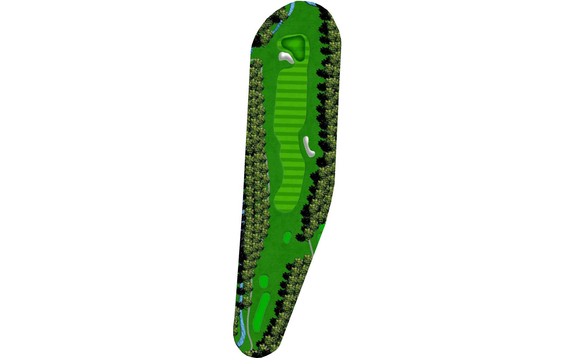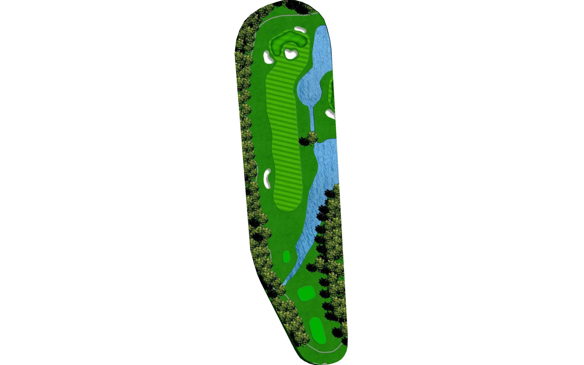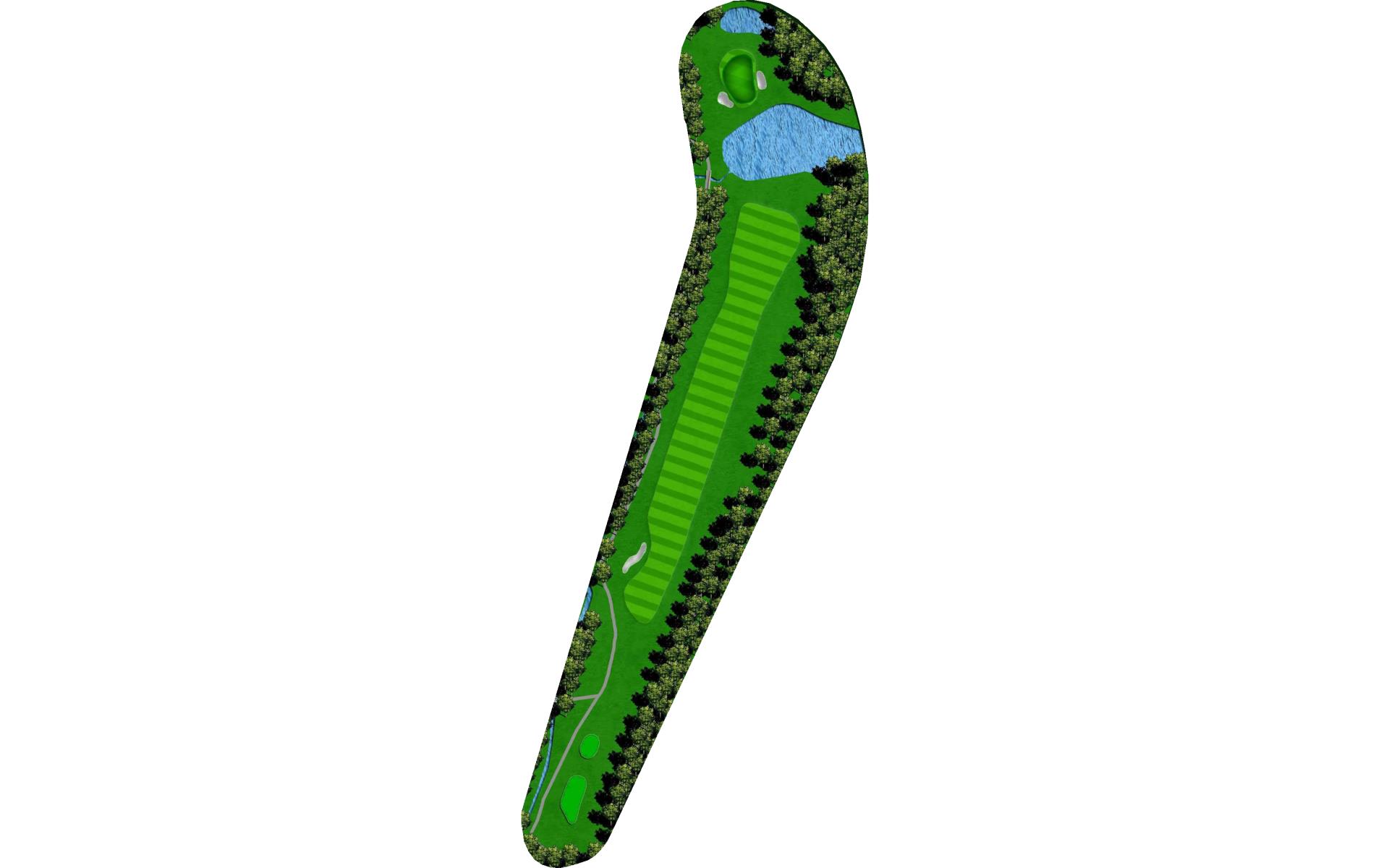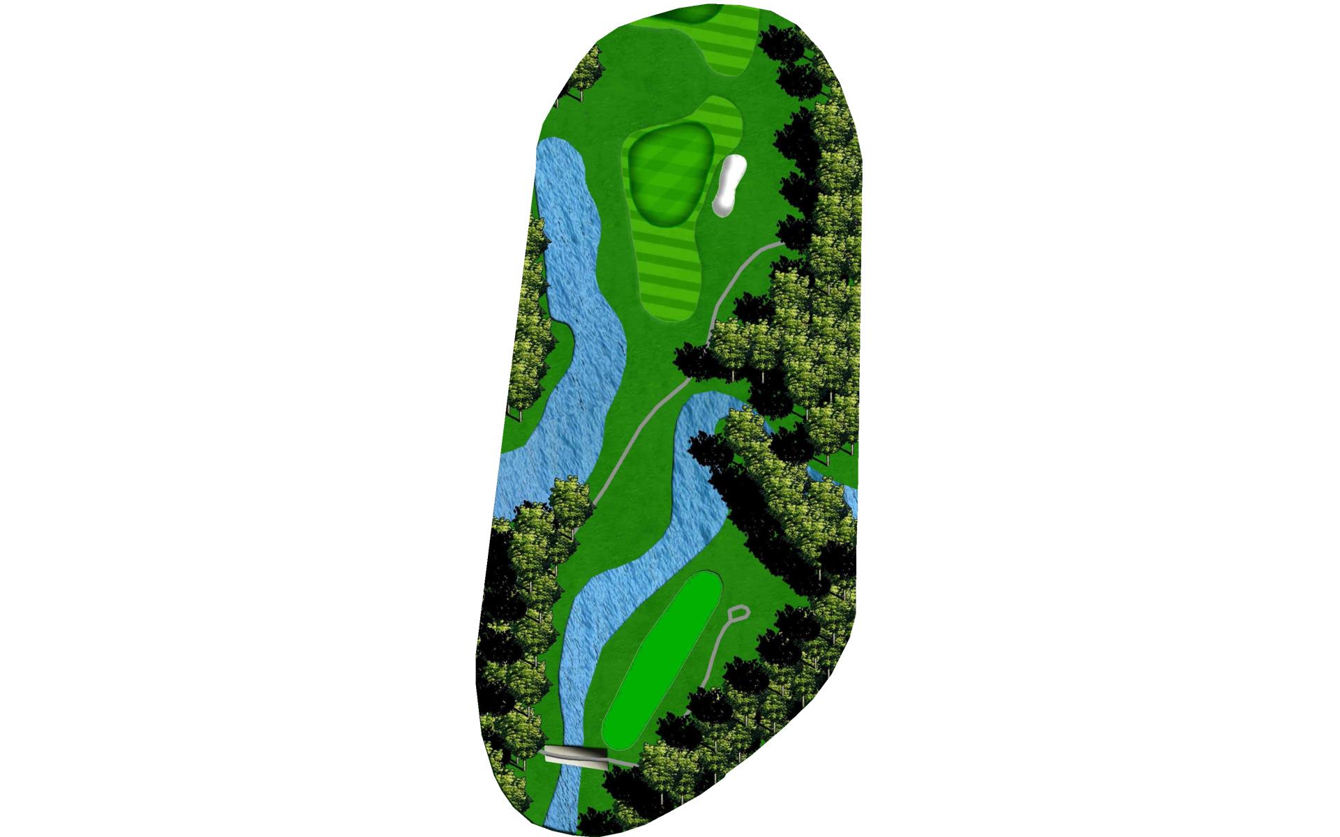 | Your tee shot is your most important here. A long drive over Swift Creek sets up a short iron approach and chance for birdie. A laid-up drive creates a more difficult approach. |