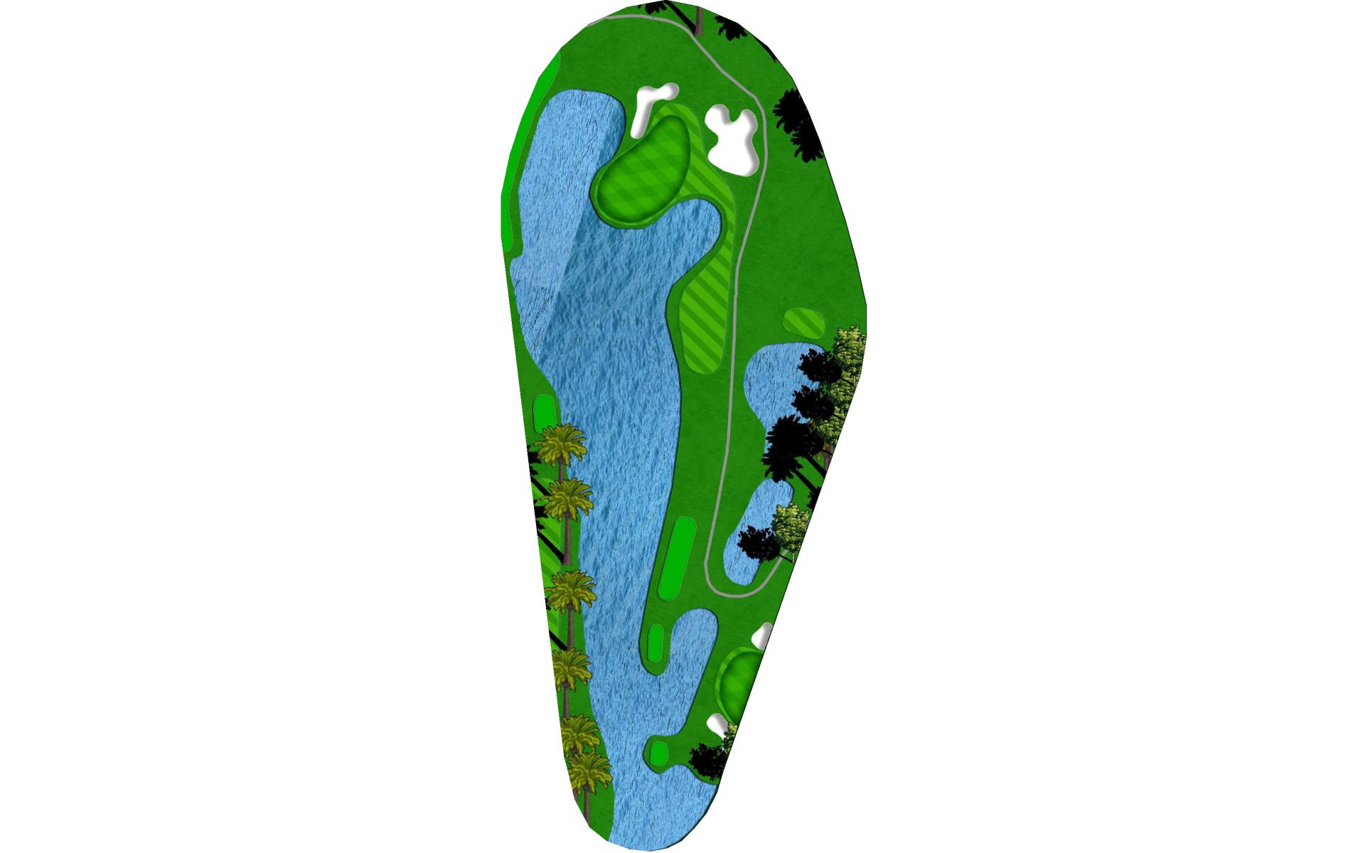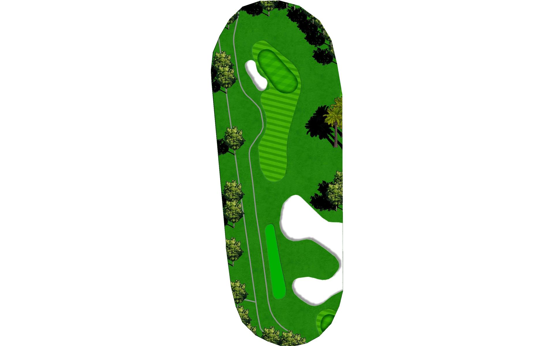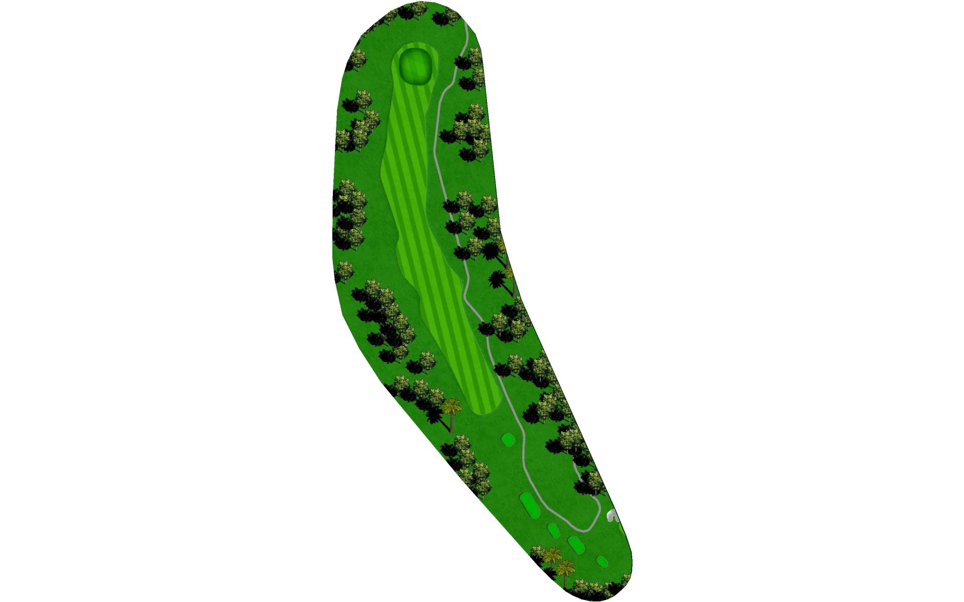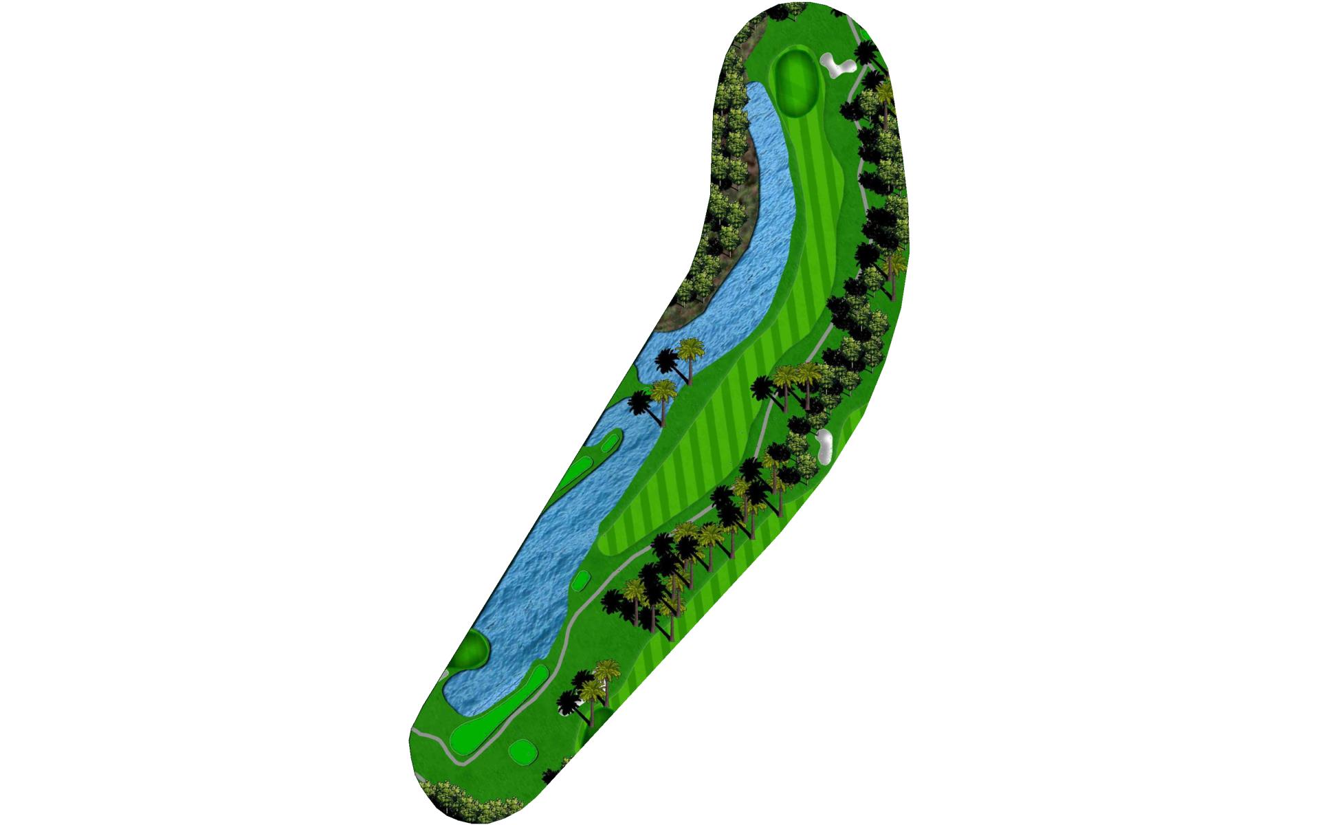 A long iron or 3 wood won't hurt here (bowling alleys are wider than this palm tree-lined fairway!). Stay short of the water and your third shot will find the green without a problem.