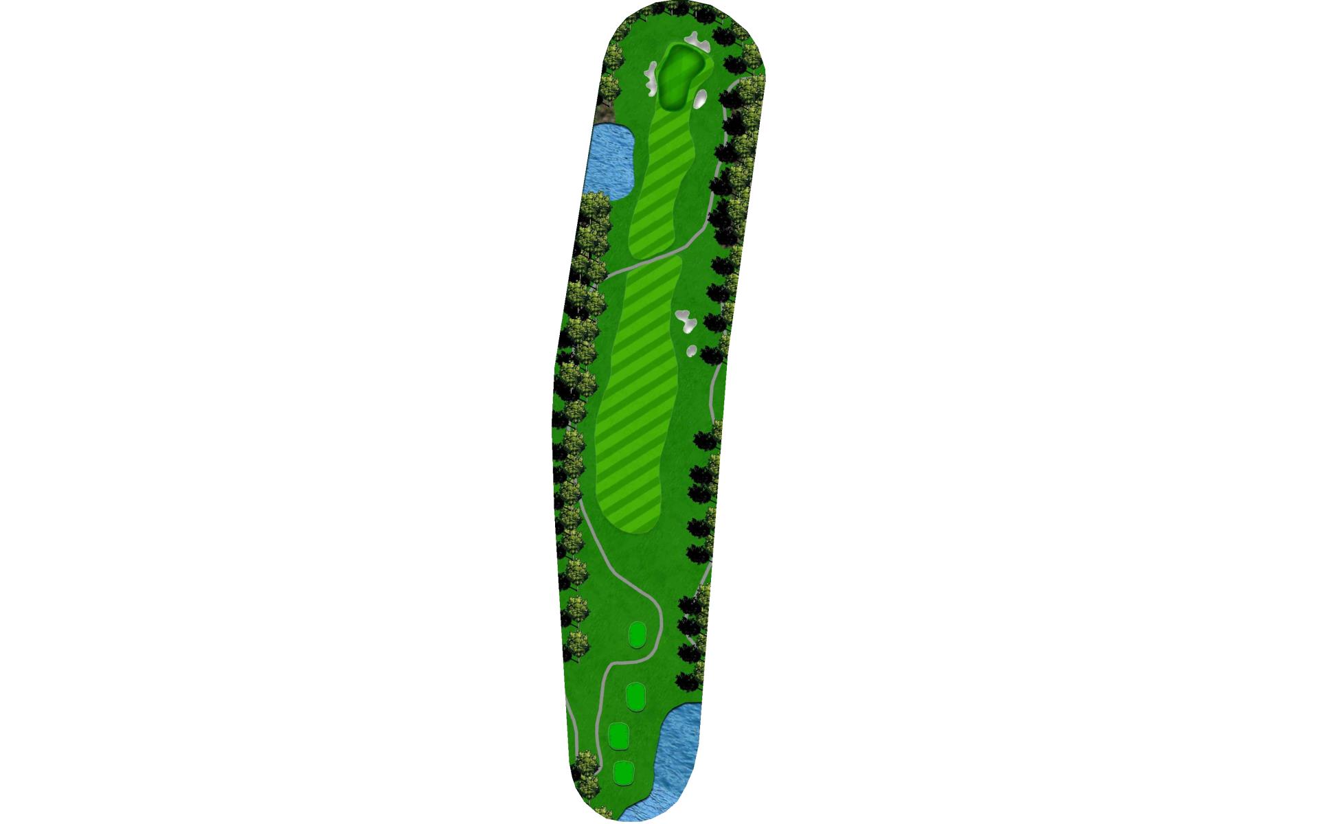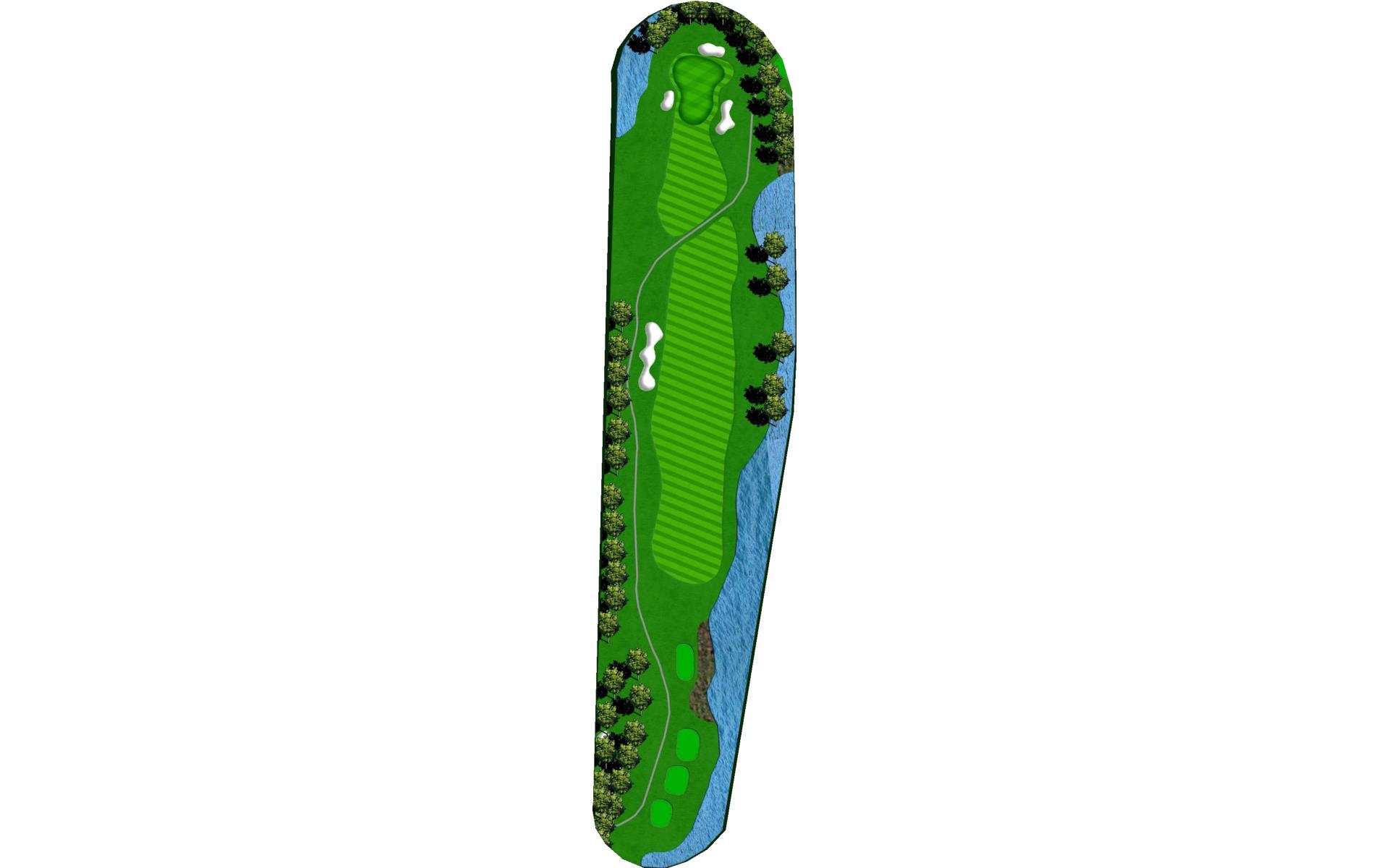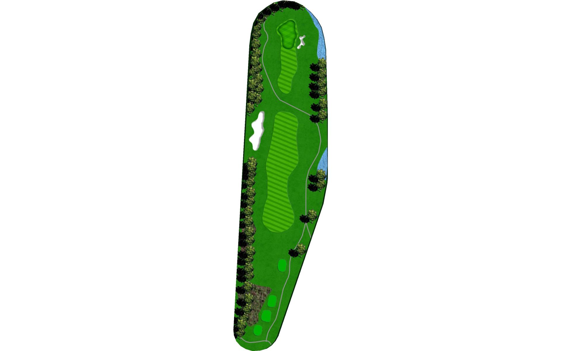 Slight dogleg left. Big green is guarded by bunkers.