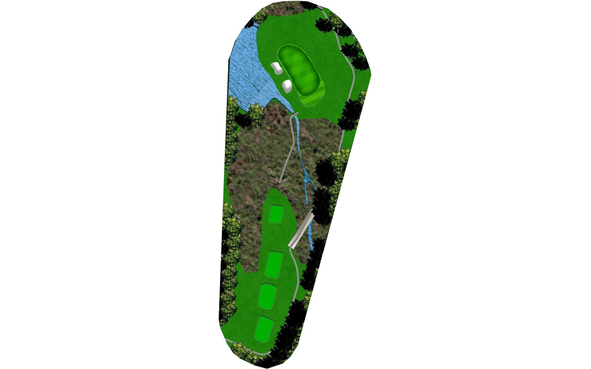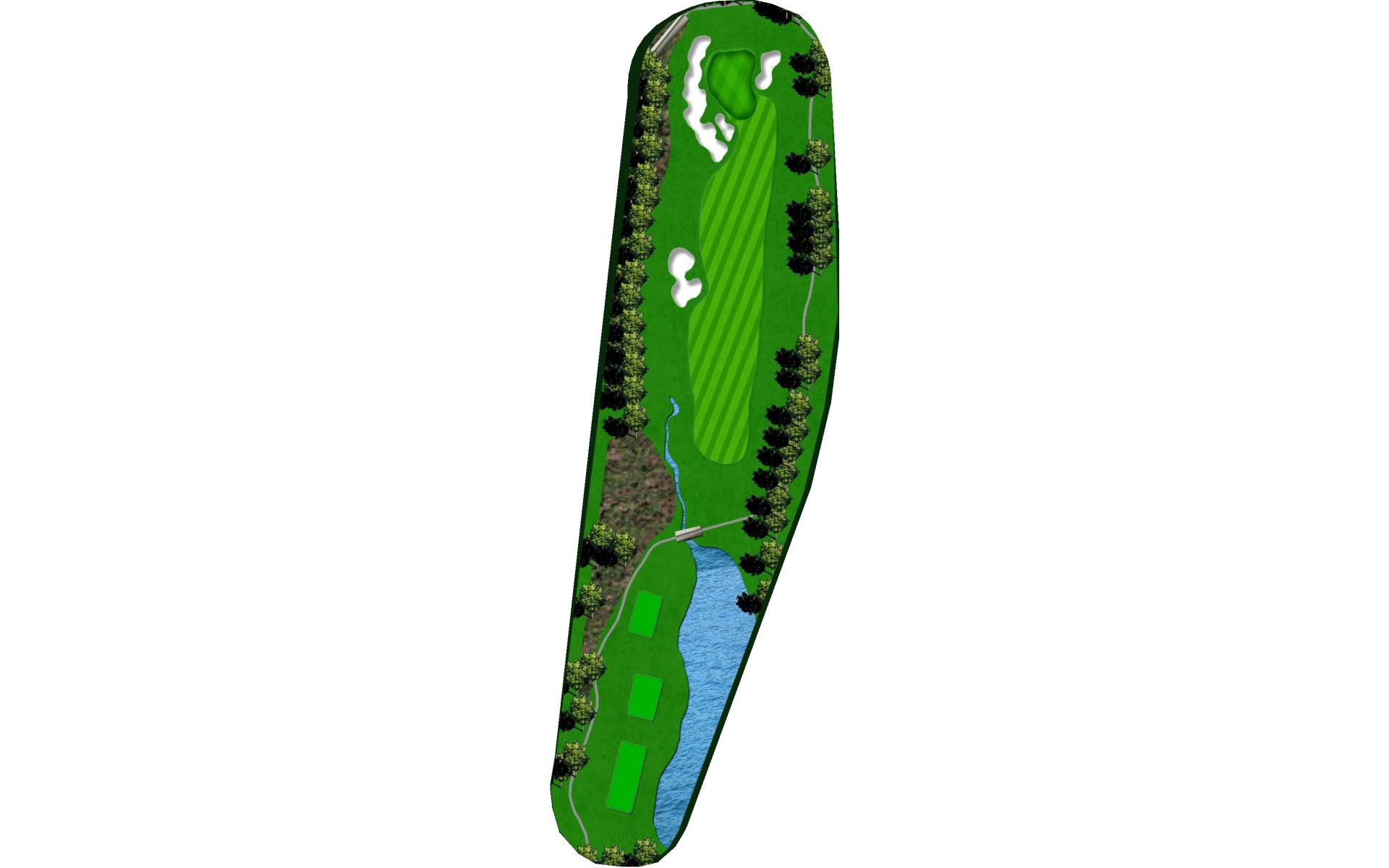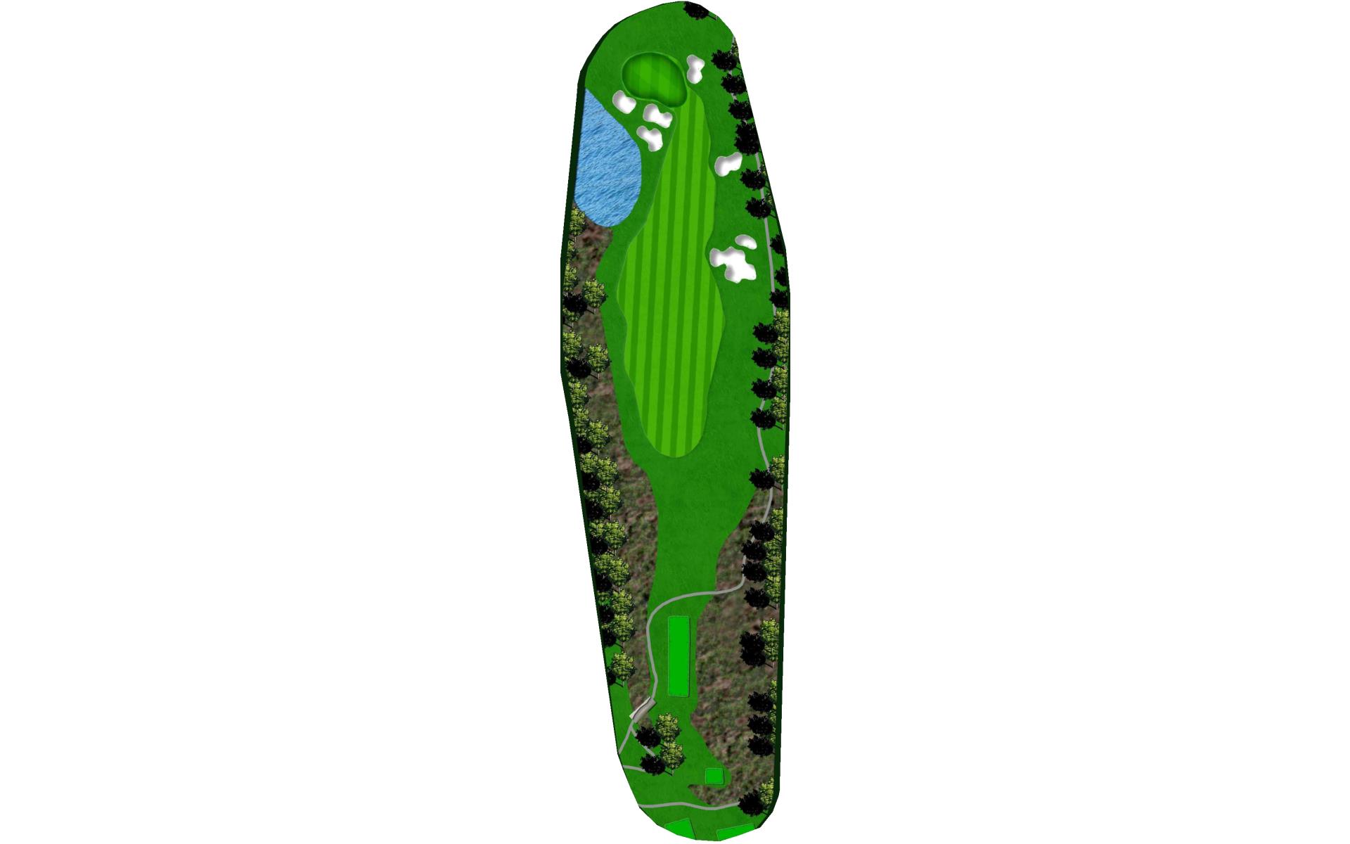 A tight risk/reward par 4. The brave of heart can try and drive the green or lay up with a long iron or hybrid, which will leave a full wedge into this green. Out of bounds lines the entire right side of the hole and a pond is present on the left and comes into play off the tee. The smart play is to leave yourself a full wedge into the green.