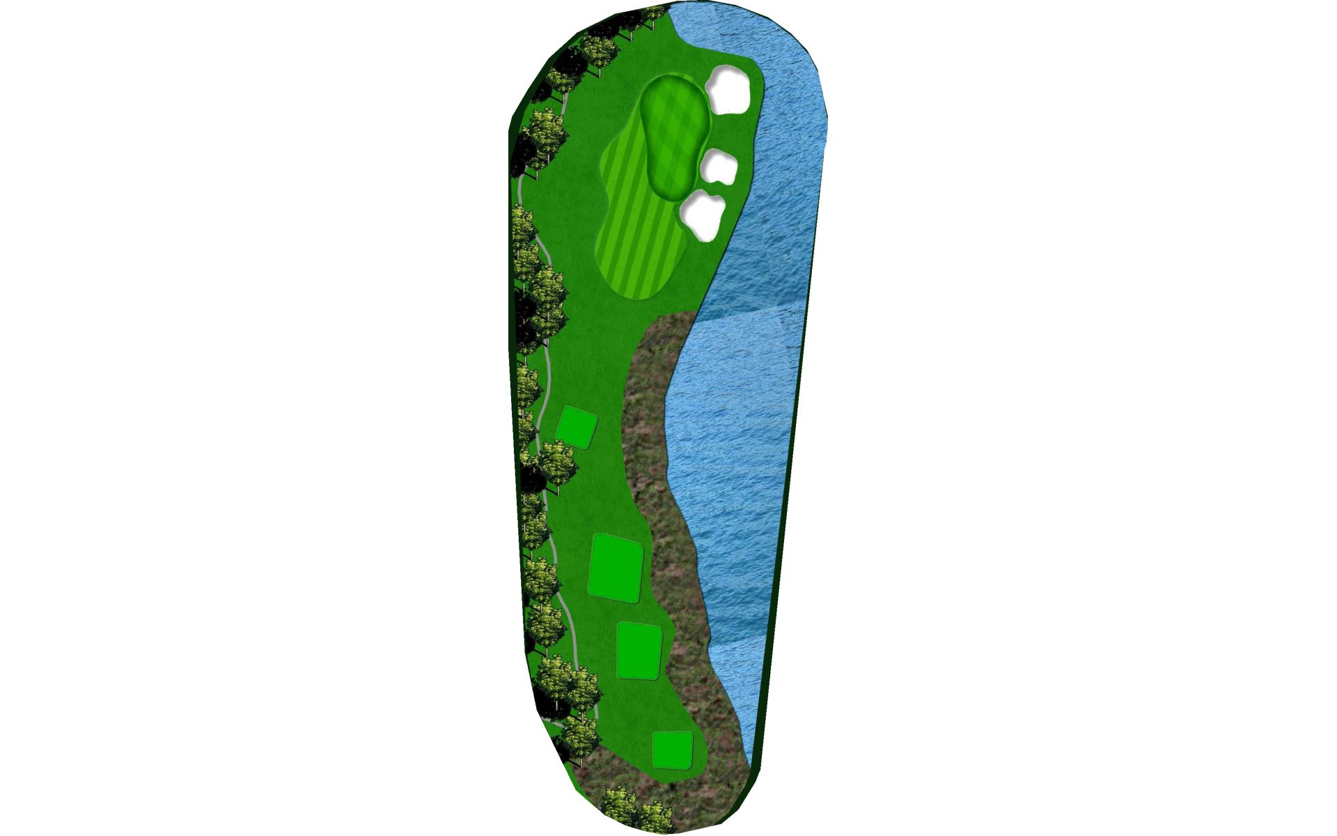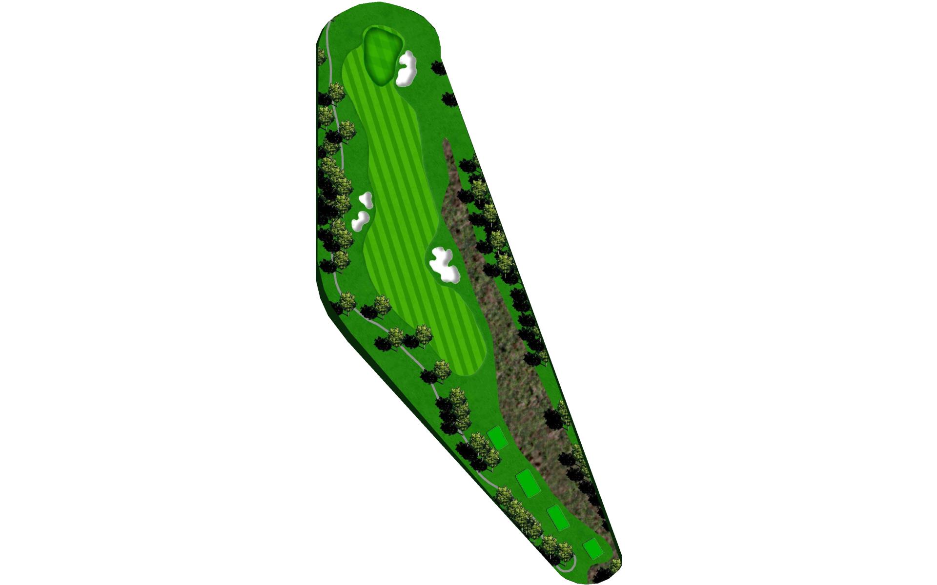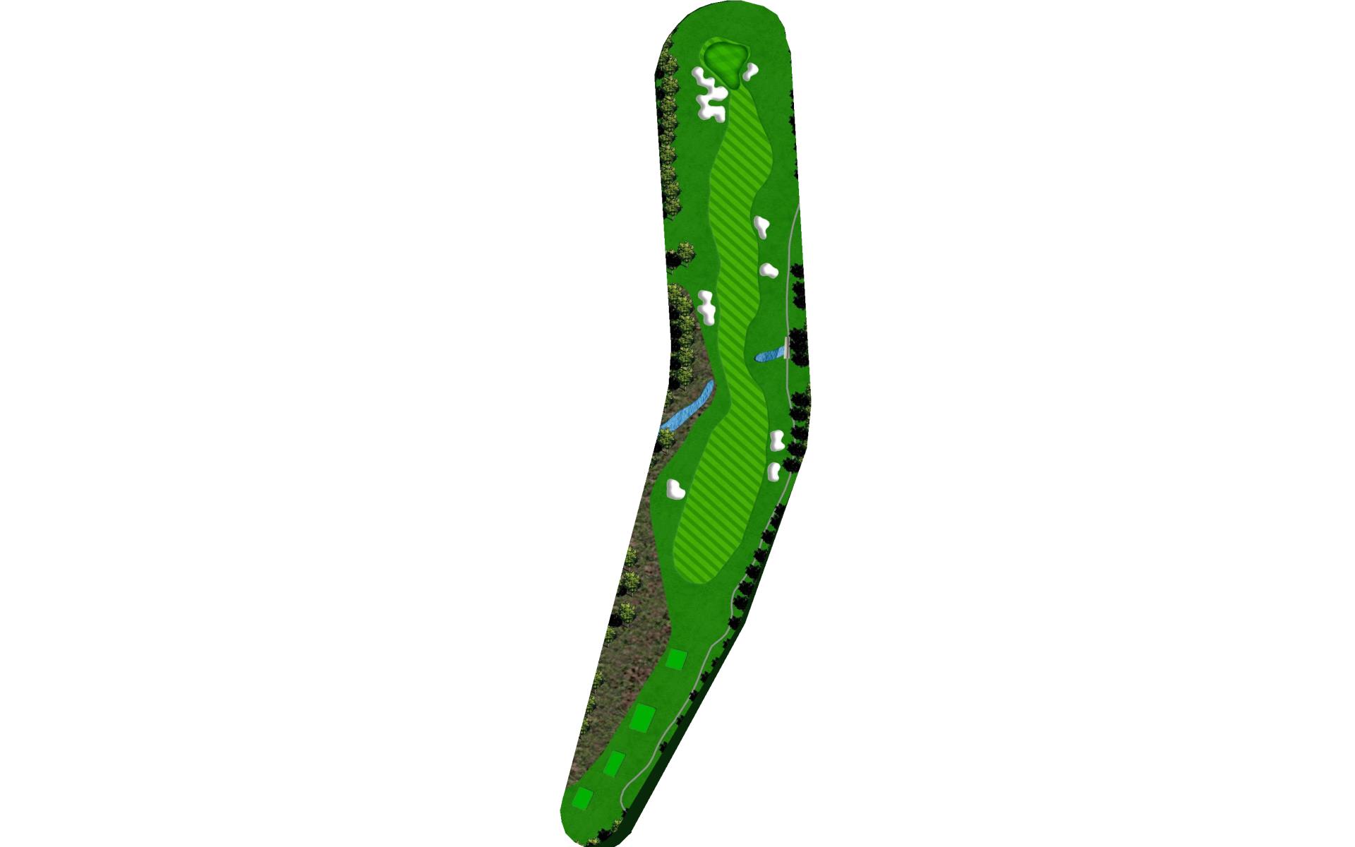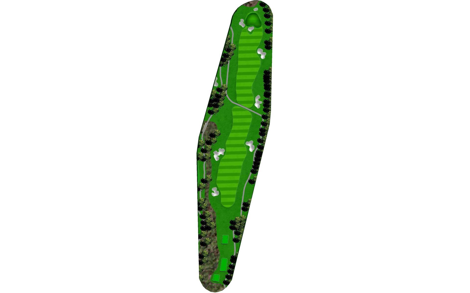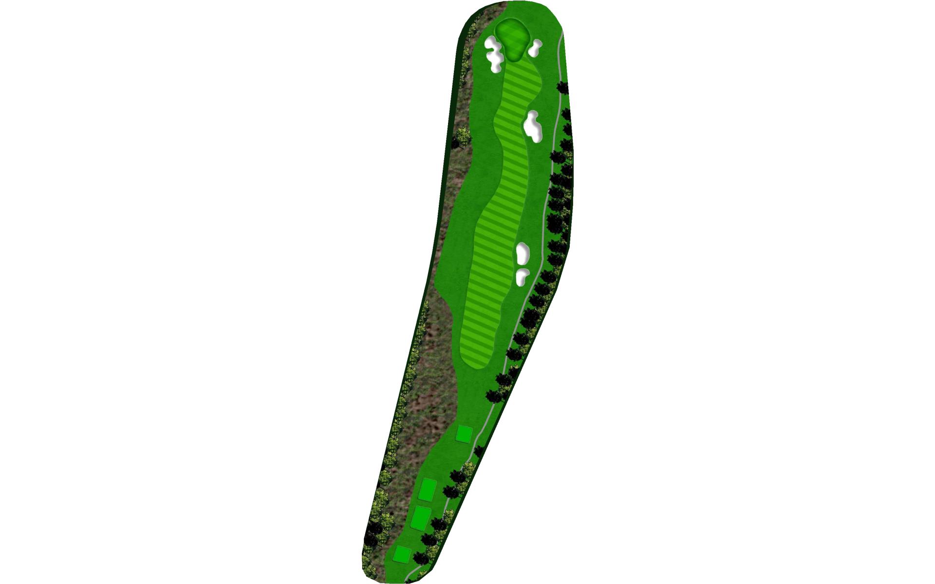 A slight dogleg right. Long hitters can try and challenge the bunker on the right for a shorter approach shot. The green has a false front and slopes from right to left as well as back to front. This challenging hole will test the best iron players because any shot into the green that lands on the left side of the green will roll off into the collection area.