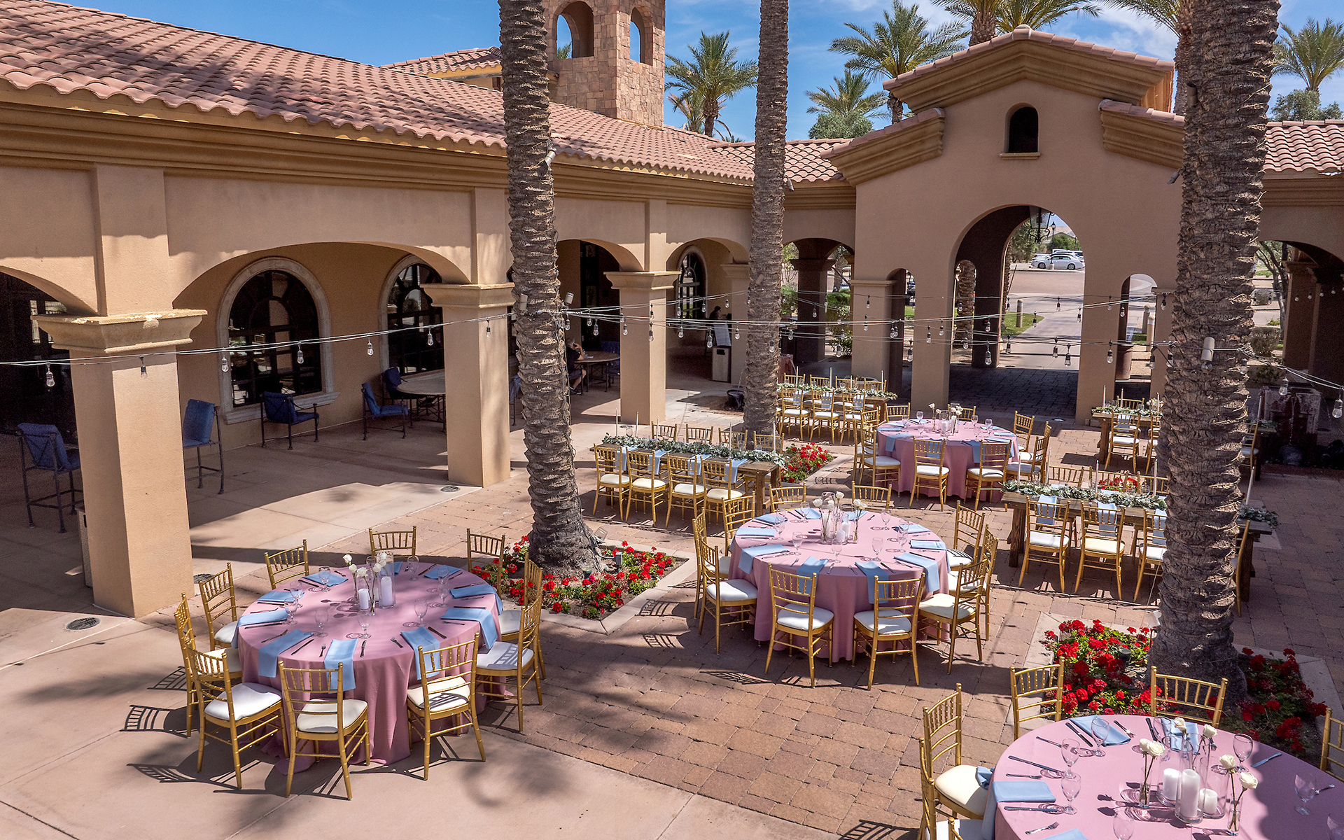Celebrate a wedding of romantic splendor at our Gilbert reception halls. With picturesque views, magnificent bell towers, grand arching entryways and expansive terraces, our clubhouse is the perfect setting for you to begin a beautiful journey together. Our Cascada Ballroom is spacious and elegant with an illustrious charm that will capture your hearts, leaving you and your loved ones with the memory of a magical celebration.