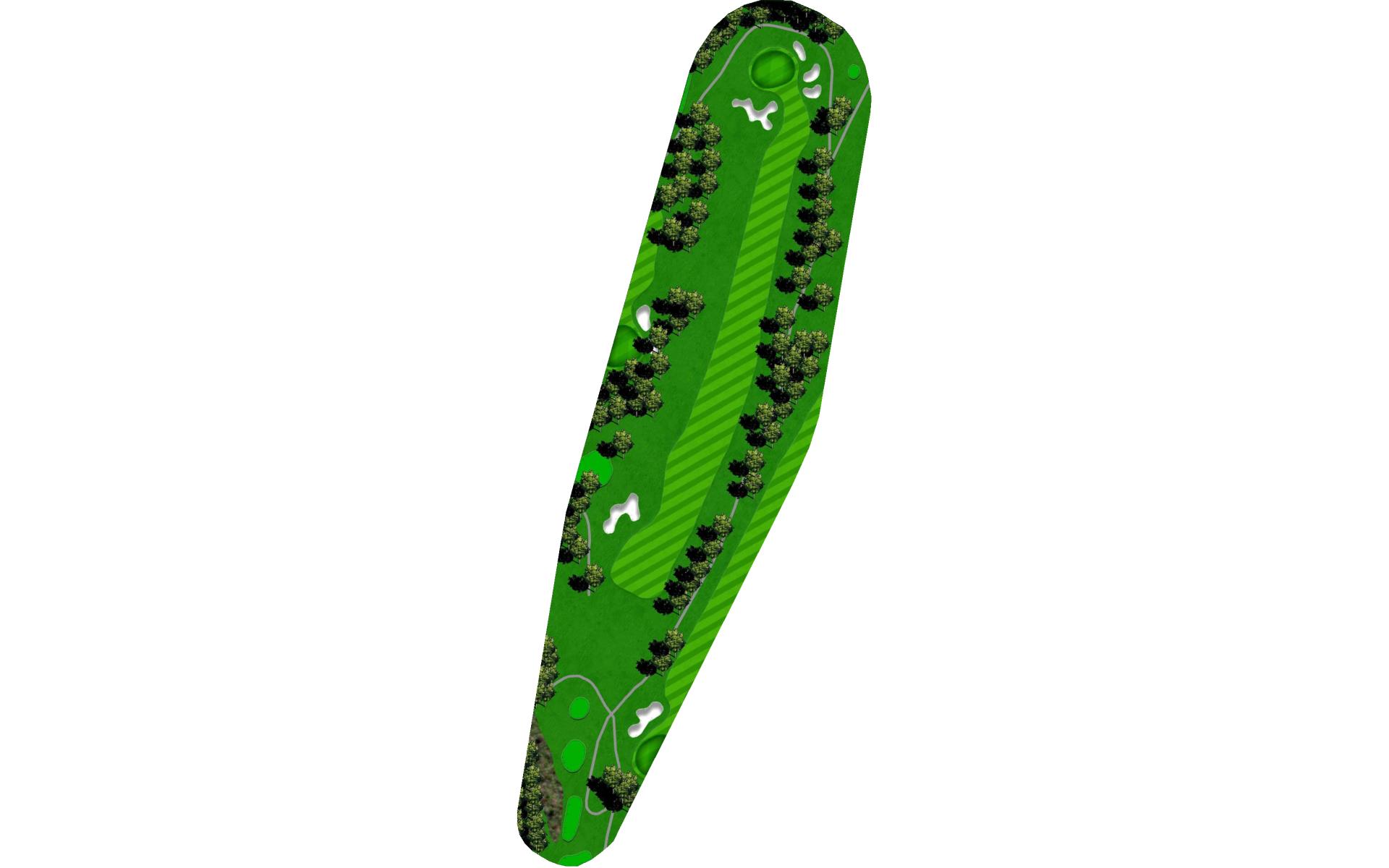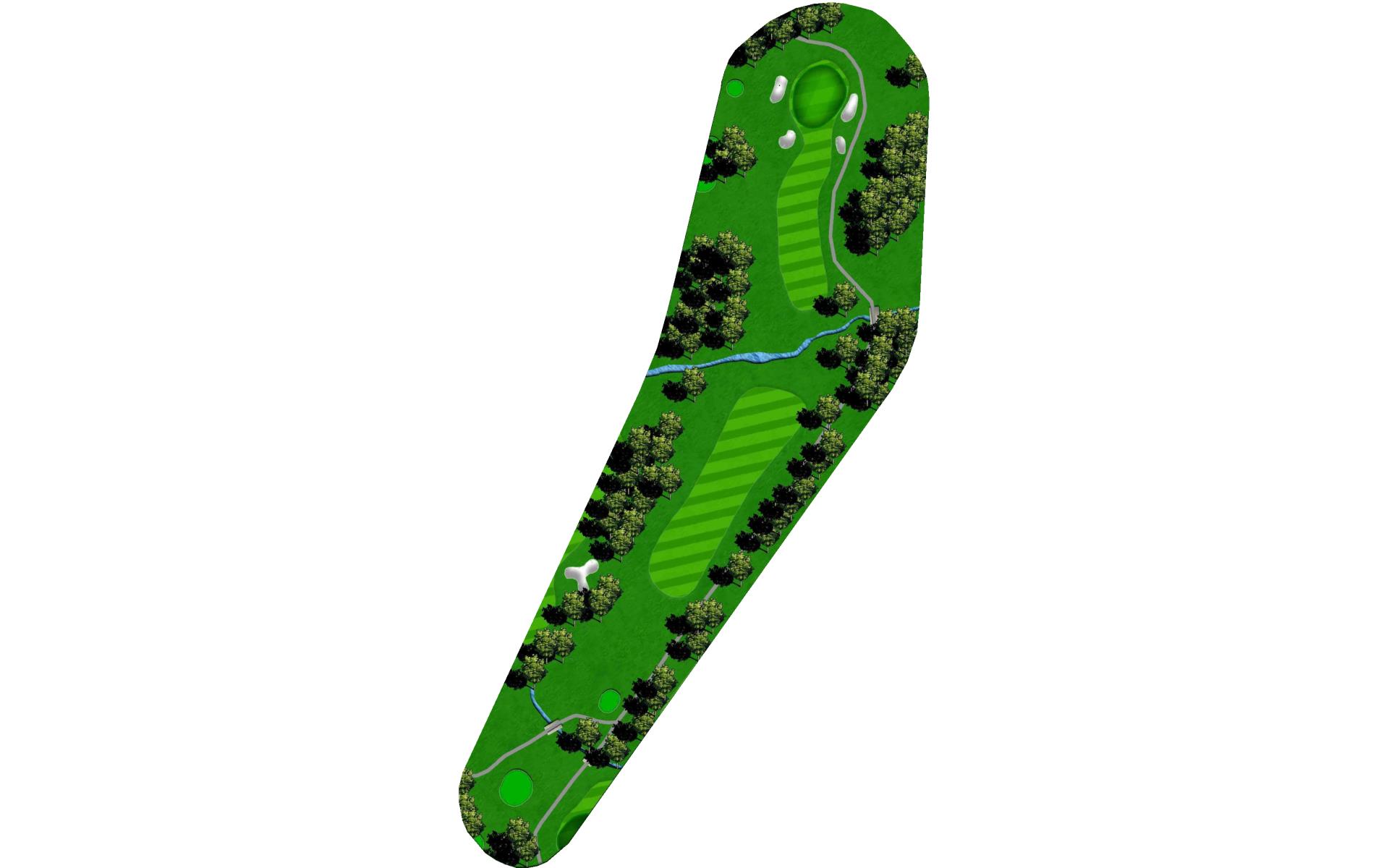 Difficult short hole that features a hazard down the left side and a challenging sloped back to front green. Stay below the hole.