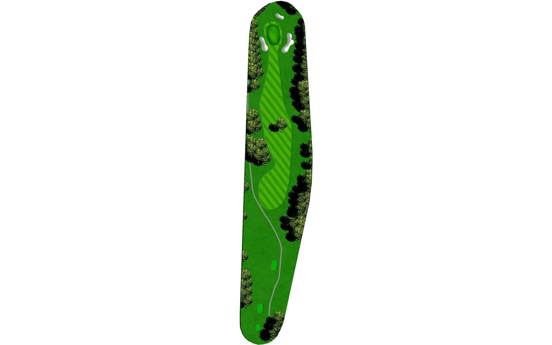 A long straight forward par 4. The hardest thing on this hole is to hit enough club on the approach. The uphill approach requires almost 1 ½ clubs more. The green slopes from back right to front left more severely than you may first think.