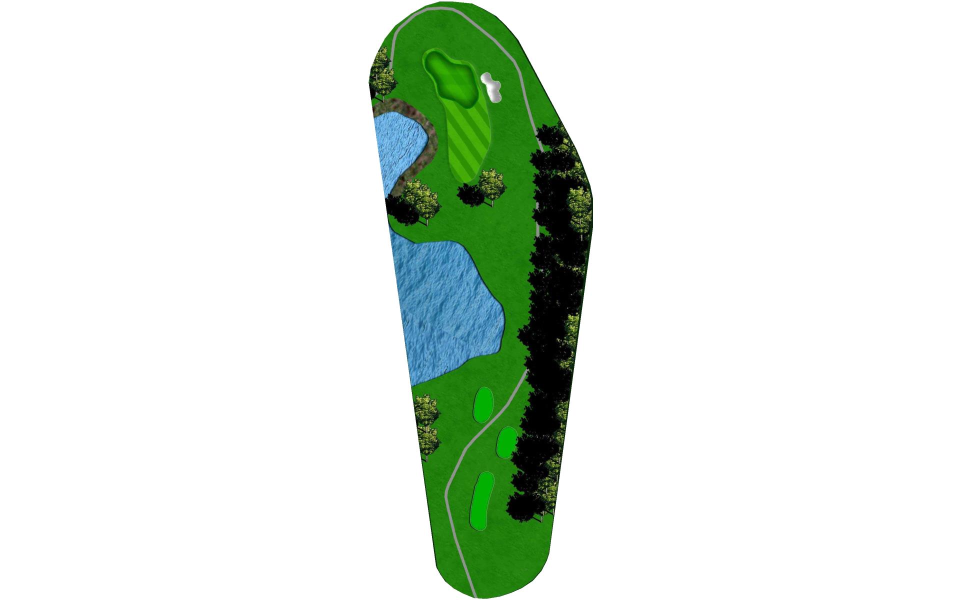 A good tee shot leaves two options; either lay up with a short iron or go for the green in two. Water left and over the right side of the green claims its share of errant shots. Once the ball is on the dance floor, the green slopes mainly back to front from the fairway angle.