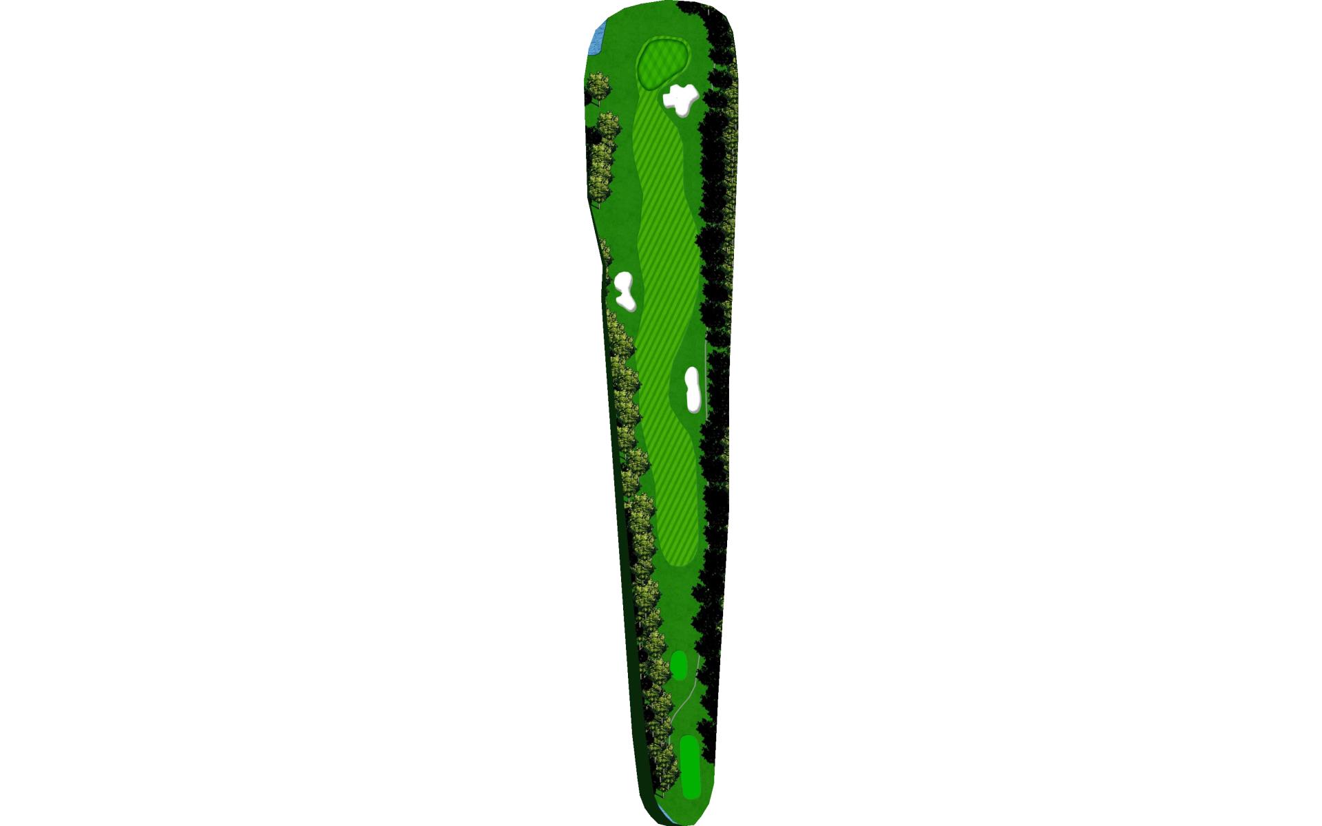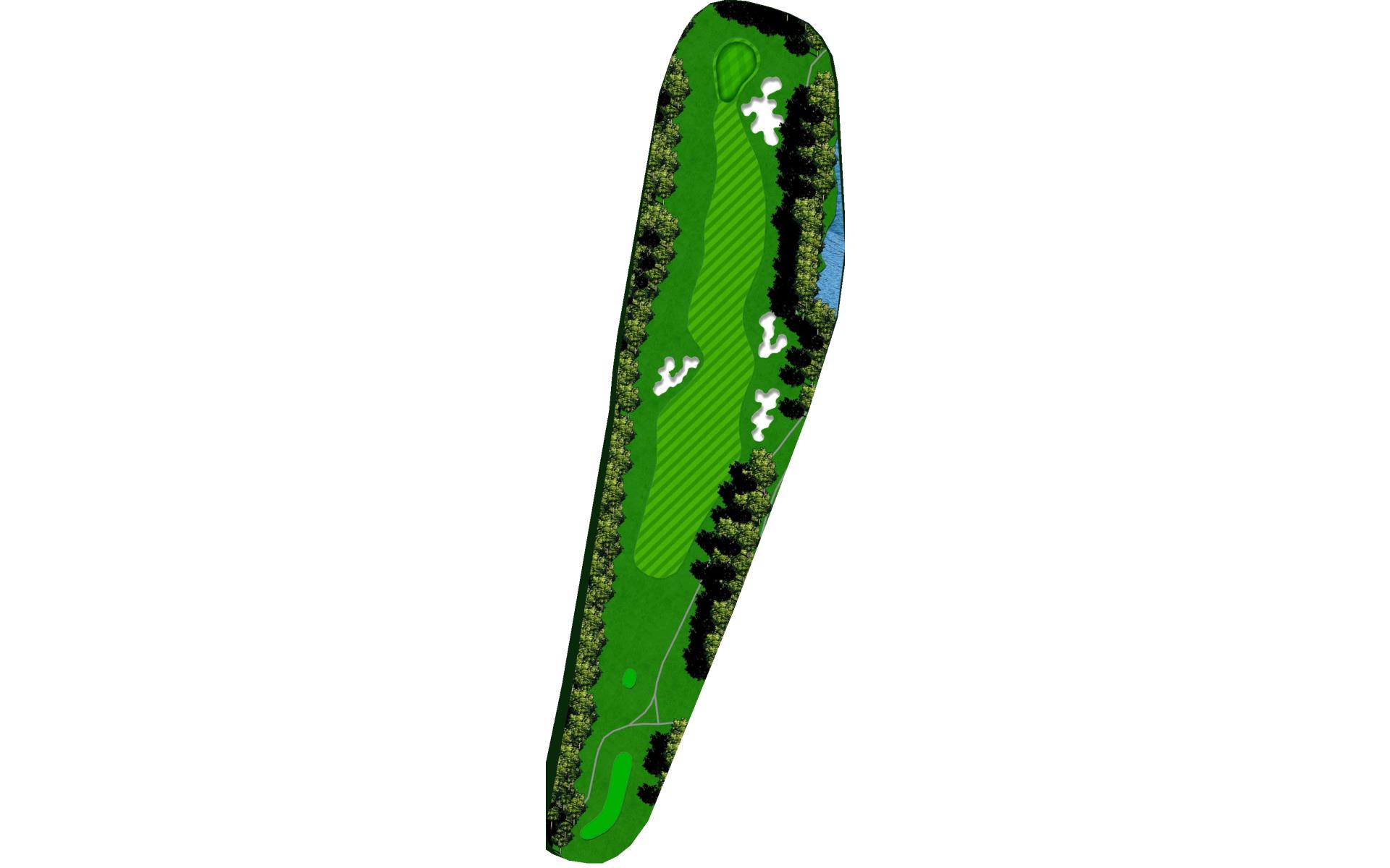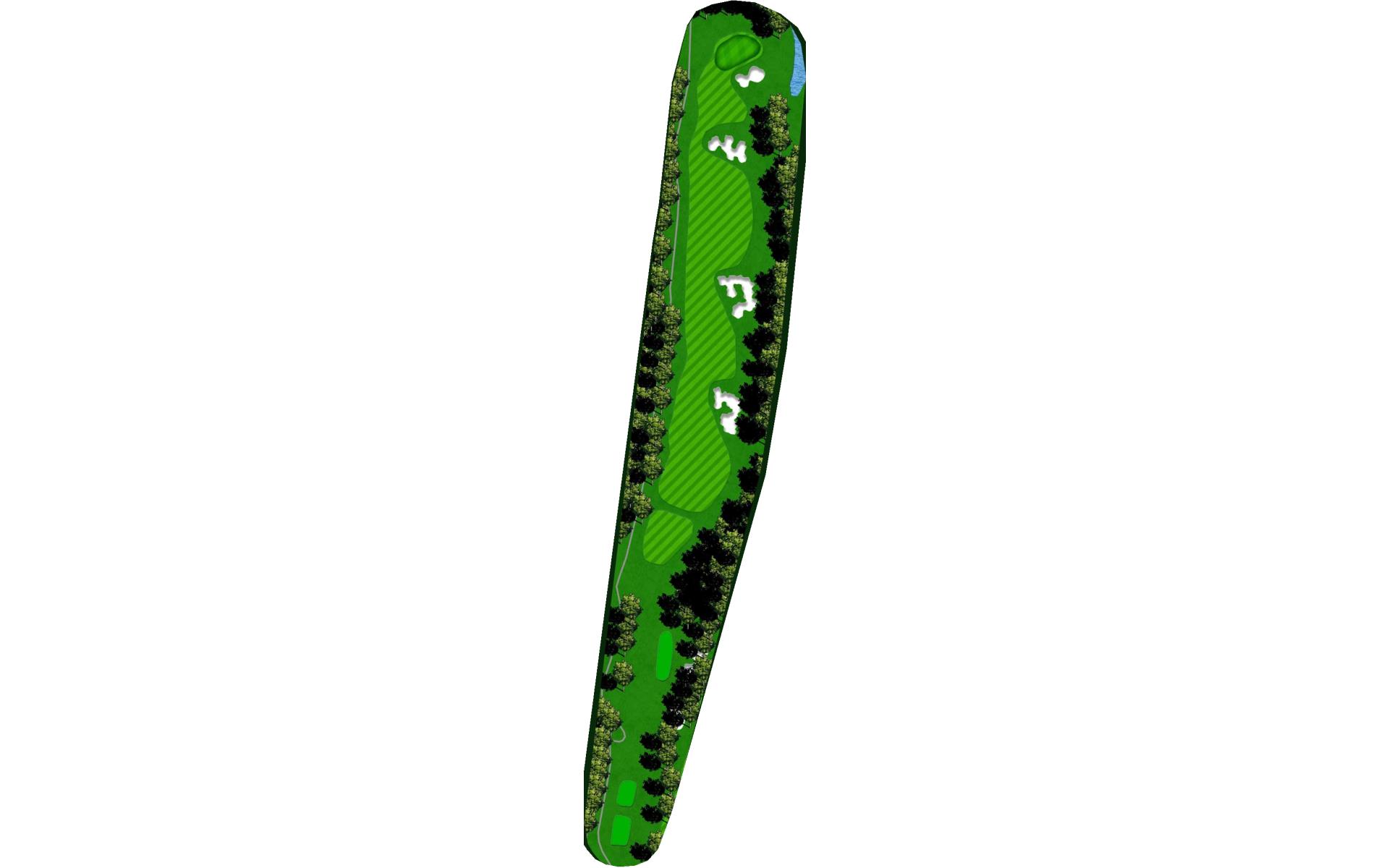 | Favor the left side of this narrow driving hole. Stay to the left of the green to avoid the large bunker on the right. |