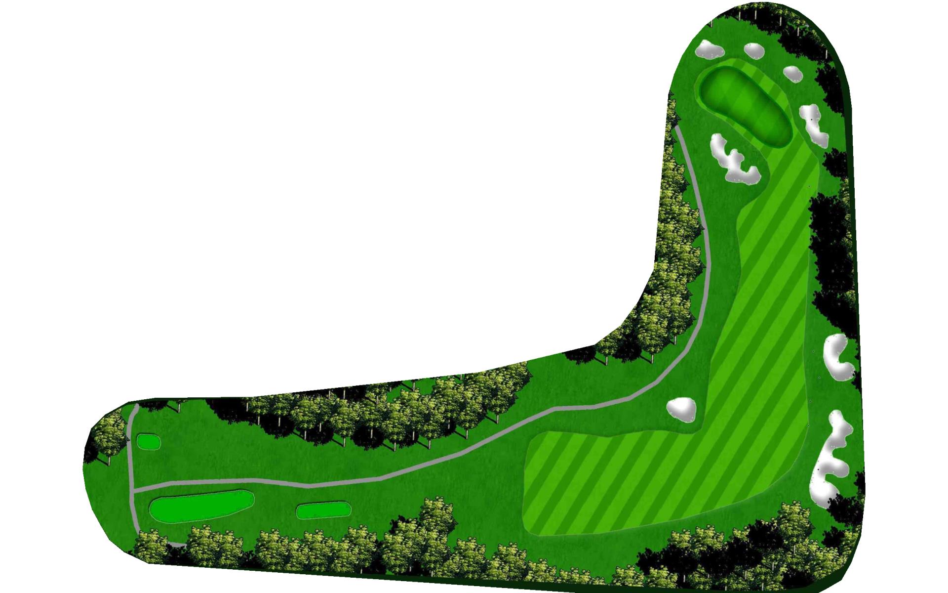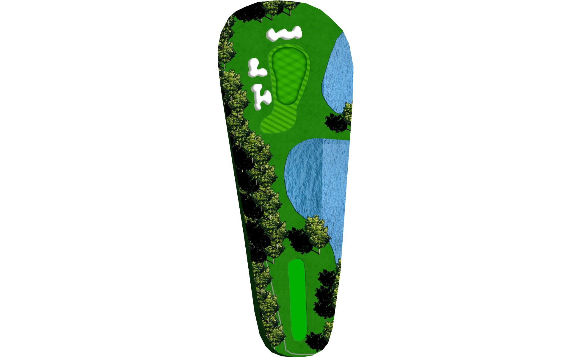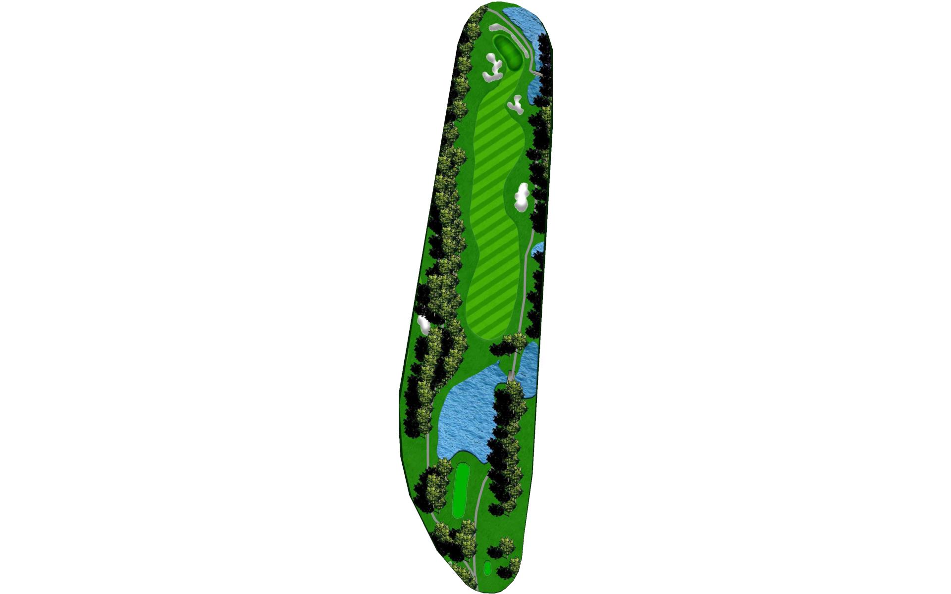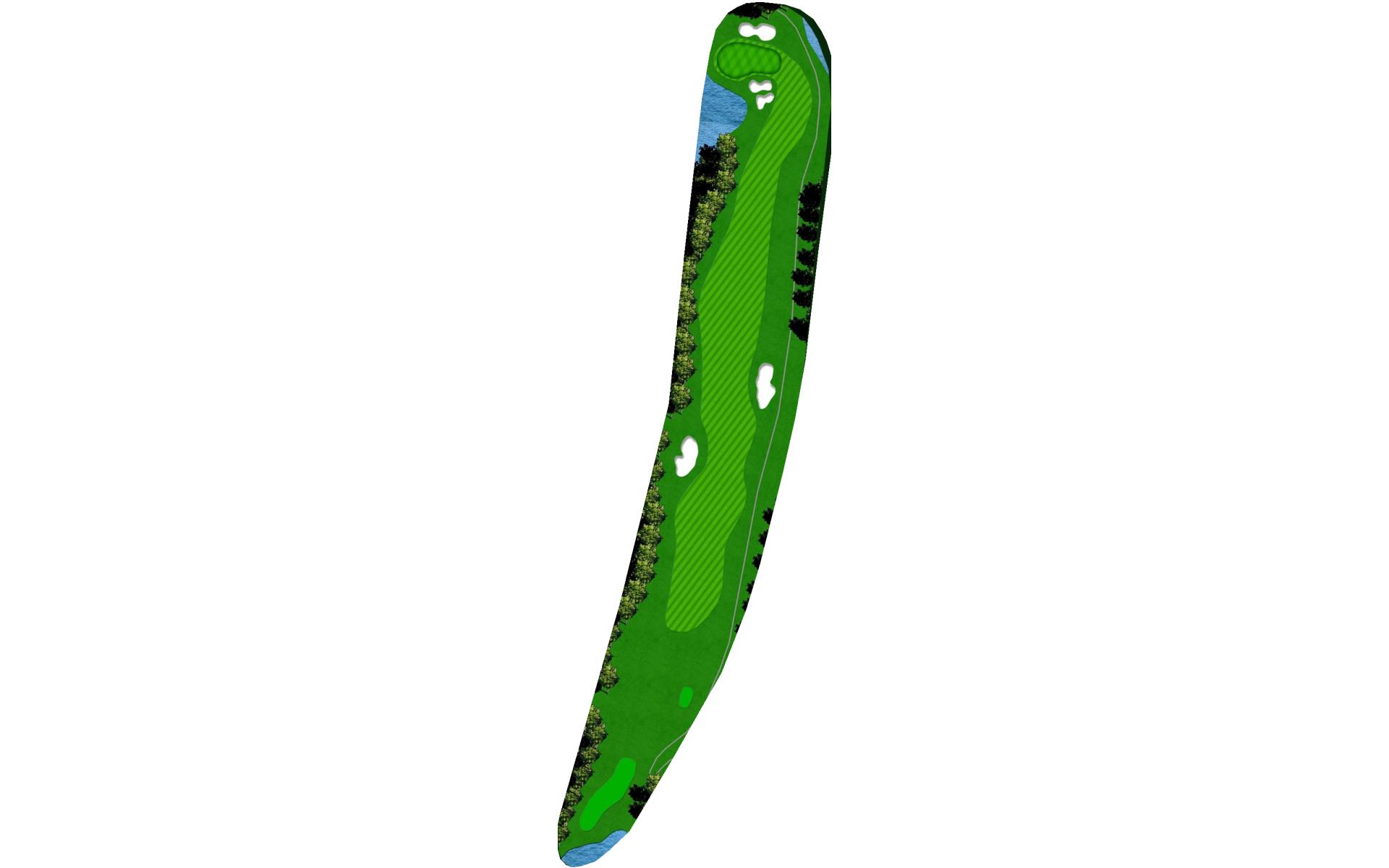 | Favor the left side of this narrow driving hole. Stay to the left of the green to avoid the large bunker on the right. |
