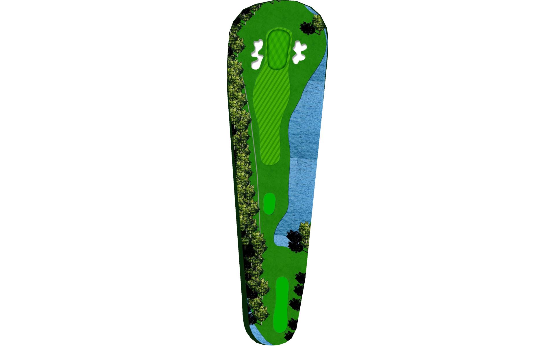 | A good drive down the left side will give you the best angle into this very narrow green. |