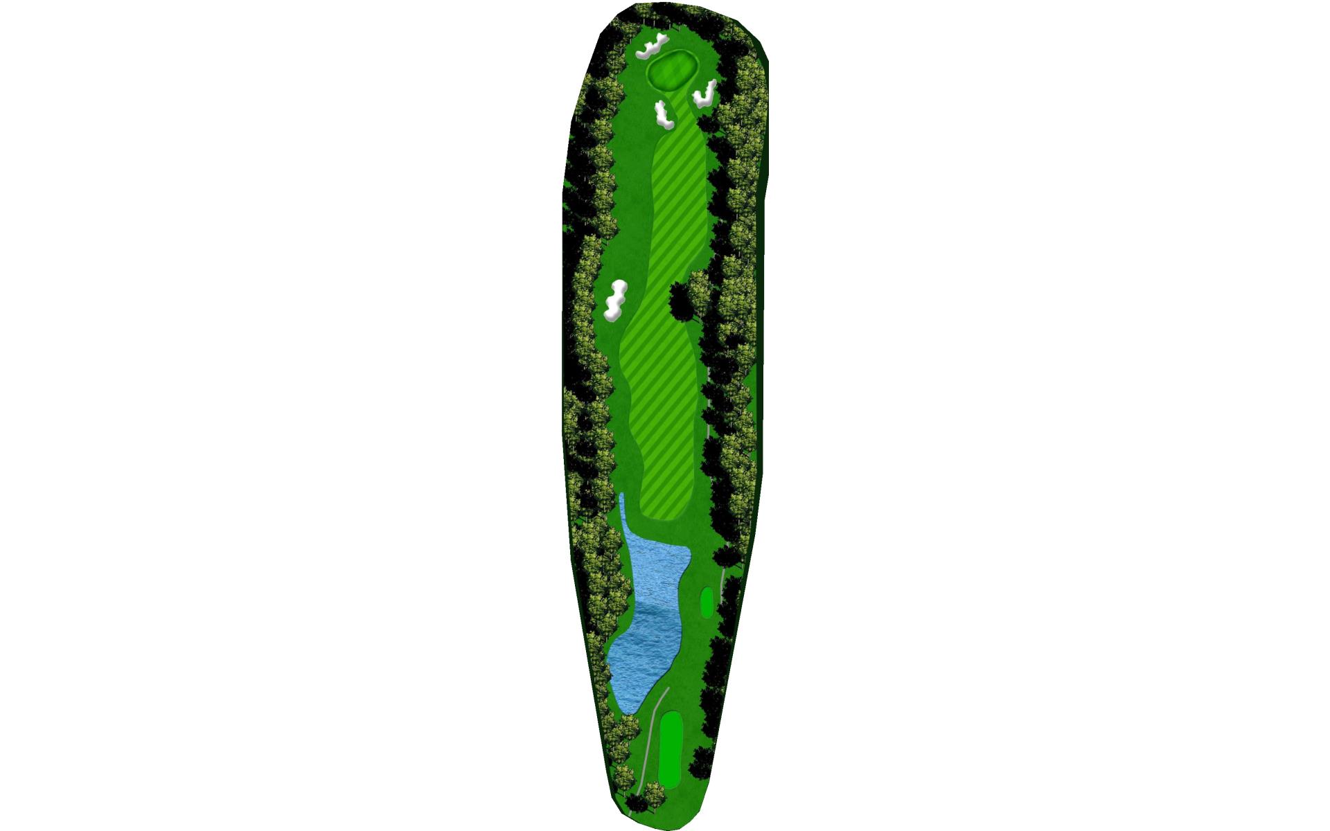 | This short par 4 is a great risk/reward hole, with water right and out of bounds left. A good approach shot will lead to a great score. |
