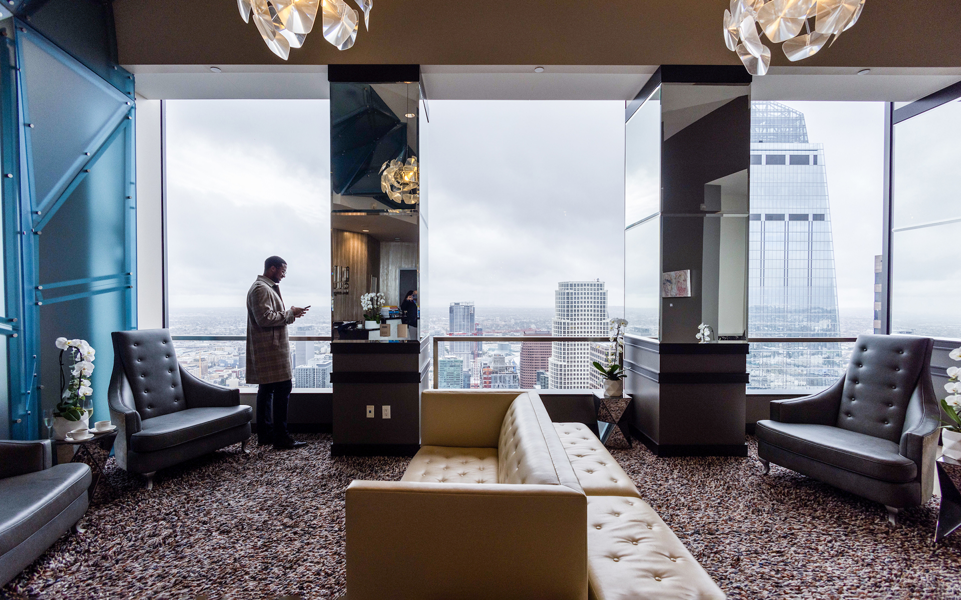 • Spectacular floor-to-ceiling views of the dynamic cityscape and soothing Pacific